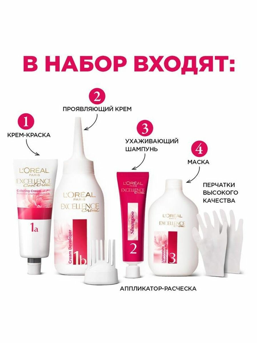 L'Oreal Paris Excellence стойкая крем-краска для волос, 1.00 Черный - 1 шт