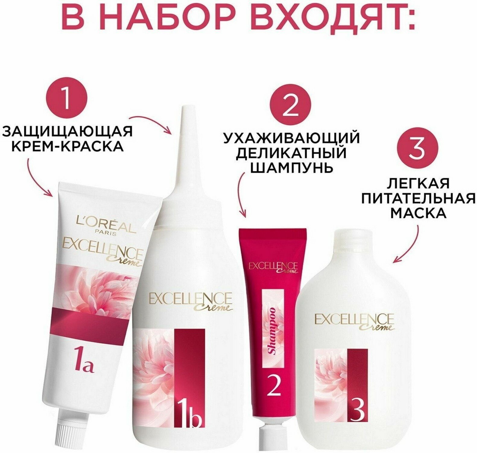 L'Oreal Paris Excellence стойкая крем-краска для волос, 1.00 Черный - 1 шт