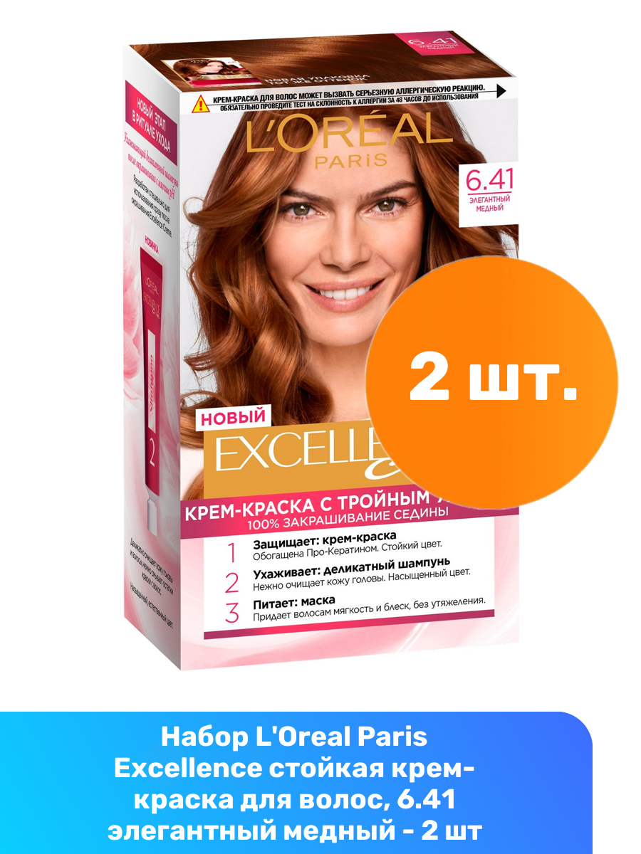 Купить L'Oreal Paris Excellence стойкая крем-краска для волос, 6.41 элегантный медный - 2 шт