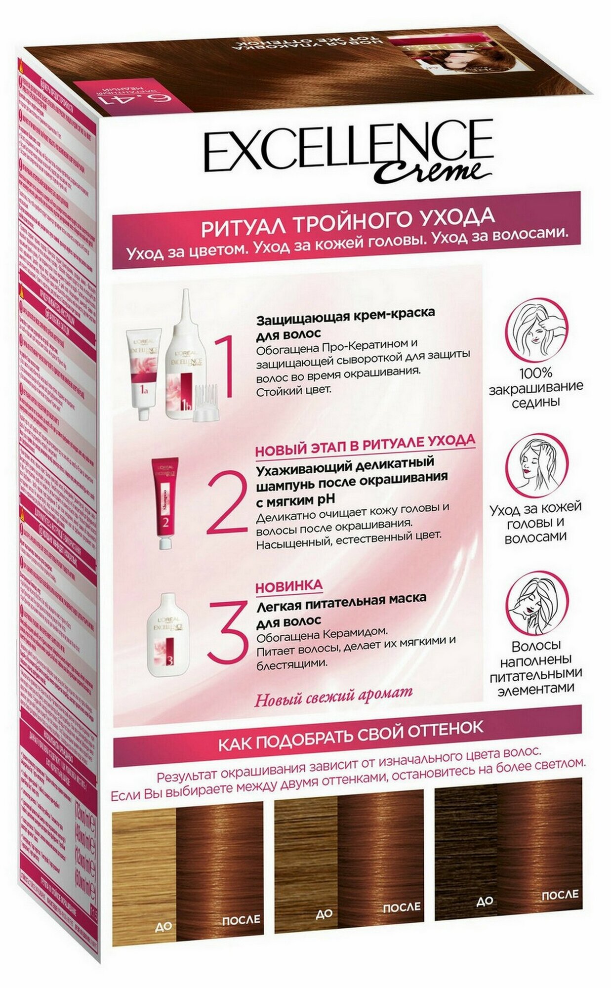 Ниже Вы можете прочитать отзывы на L'Oreal Paris Excellence стойкая крем-краска для волос, 6.41 элегантный медный - 3 шт, ознакомится с подробными характеристиками, посмотреть интересные обзоры и фотографии на L'Oreal Paris Excellence стойкая крем-краска для волос, 6.41 элегантный медный - 3 шт.