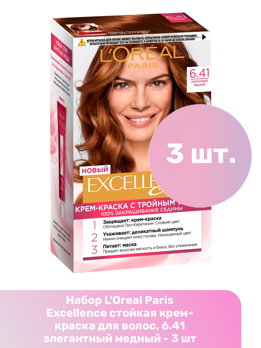 Купить L'Oreal Paris Excellence стойкая крем-краска для волос, 6.41 элегантный медный - 3 шт