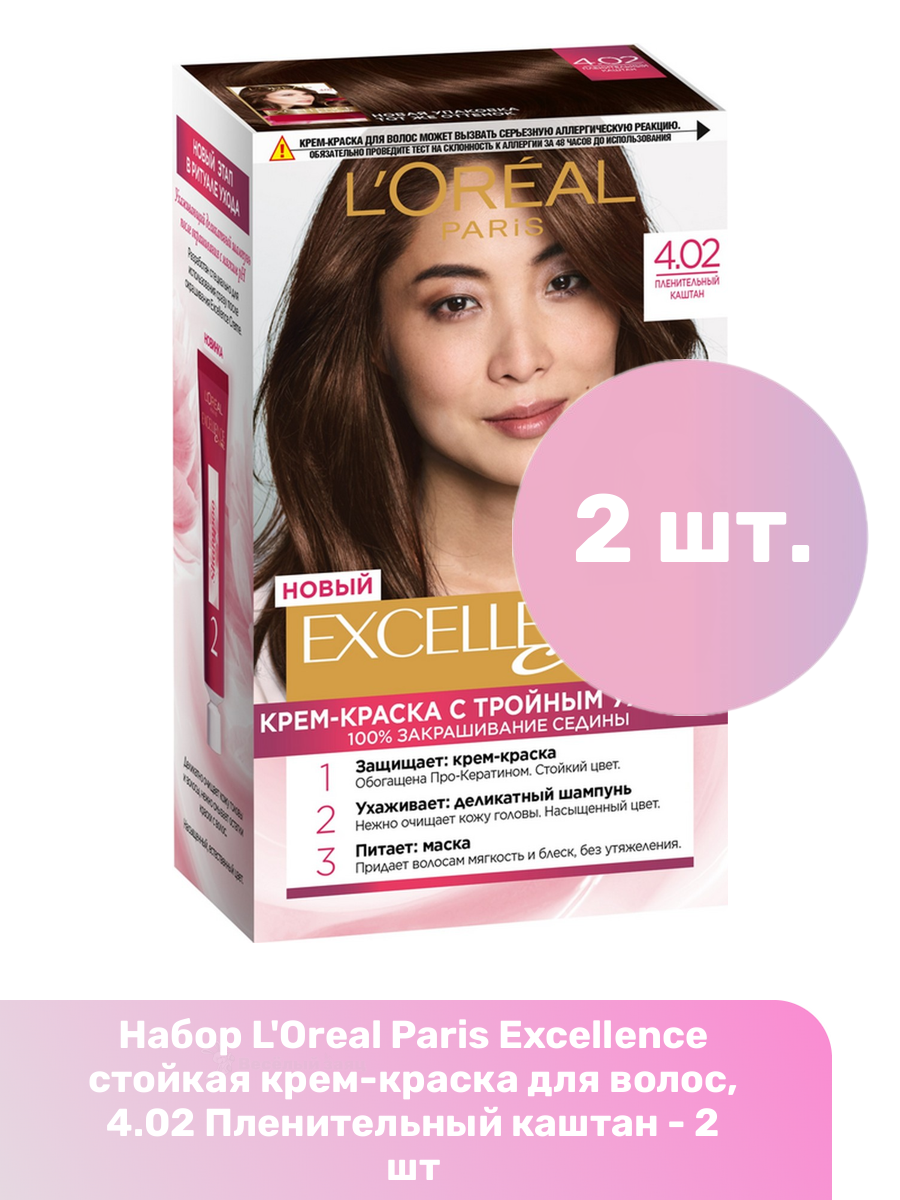 Купить L'Oreal Paris Excellence стойкая крем-краска для волос, 4.02 Пленительный каштан - 2 шт