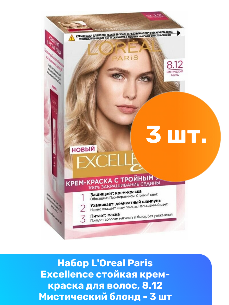 Купить Набор из 3 штук Крем-краска для волос L'Oreal Excellence Creme 8.12 мистический