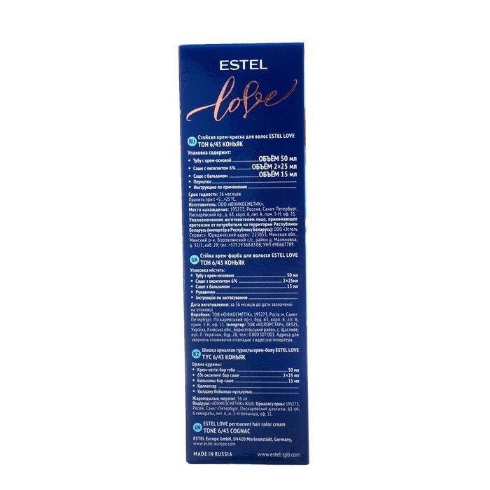 Купить ESTEL Стойкая крем-краска LOVE, тон 6/43 Коньяк, 1 шт