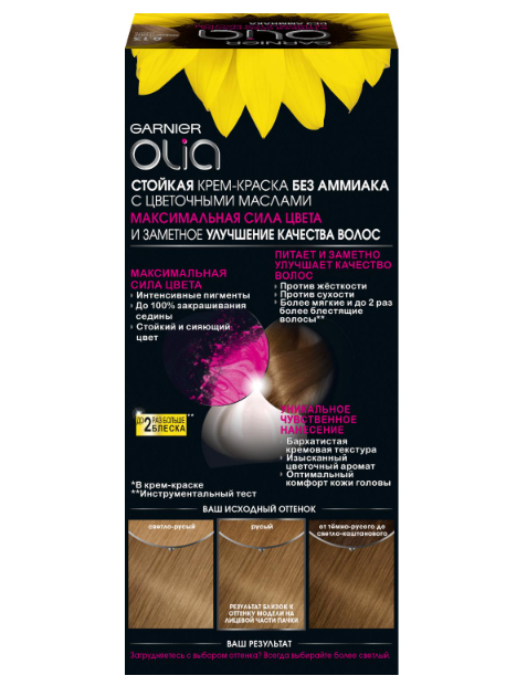 Garnier Стойкая крем-краска для волос "Olia" с цветочными маслами, без аммиака, оттенок 7.0 Русый, светло-коричневый, 110 мл.