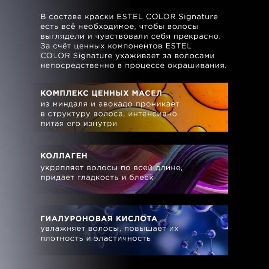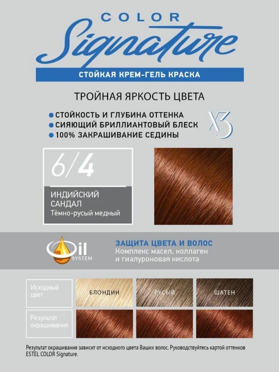 СохранитьESTEL COLOR Signature Стойкая крем-гель краска для волос 6/4 Индийский сандал интересное: