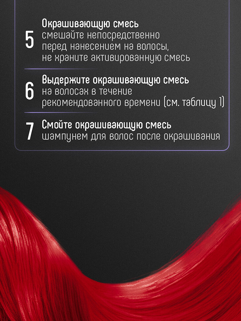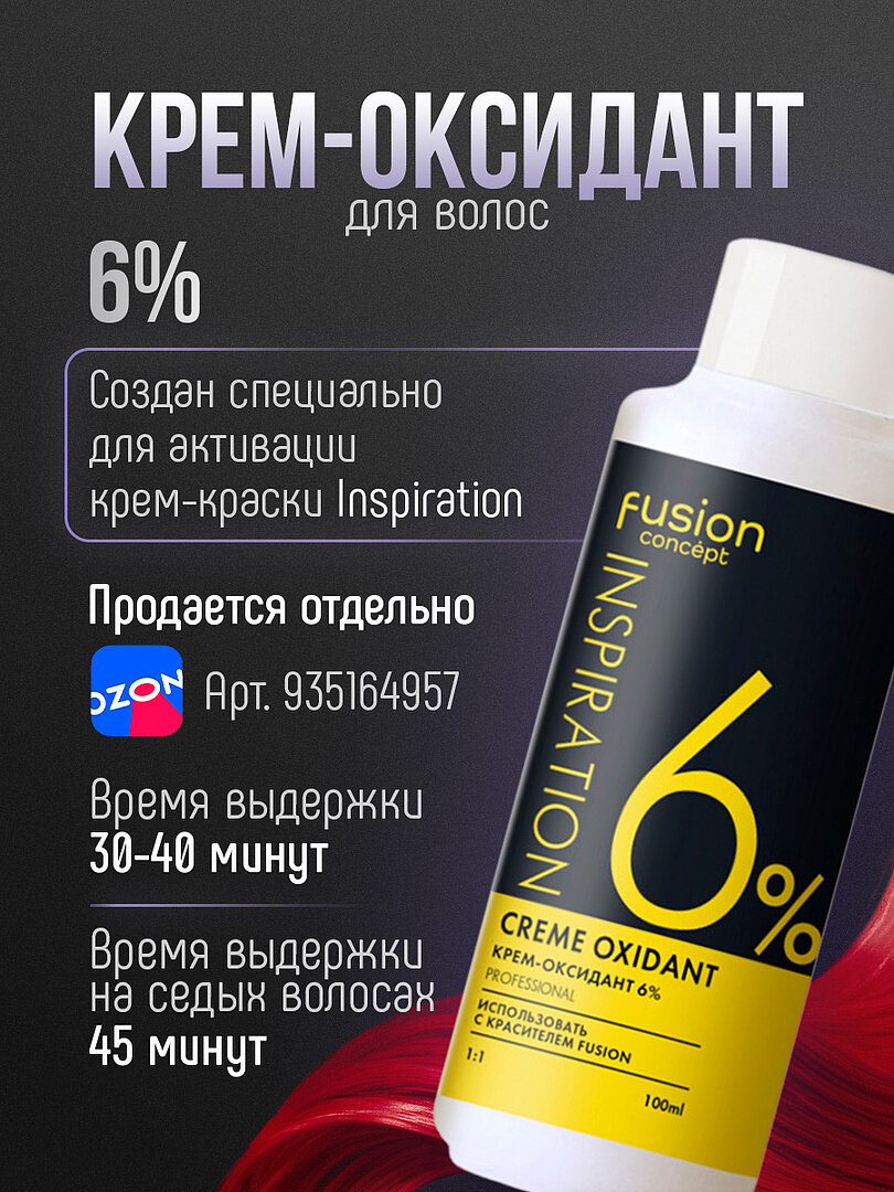 | Способ применения | Внимательно ознакомьтесь с инструкцией, прежде, чем использовать крем-краску Concept Fusion. При выборе тона крем-краски принимайте во внимание интенсивность, способность к закрашиванию седины и осветляющее действие состава. Проведите тест на чувствительность кожи. Смешайте крем-краску Concept Fusion и оксидант в пропорции 1:1. Окрашивающую смесь смешайте непосредственно перед нанесением на волосы. Выдержите окрашивающую смесь на волосах в течение рекомендованного времени. Смойте окрашивающую смесь шампунем. Рекомендуем воспользоваться 4-х ступенчатой системой ухода Super Miracle от Concept Fusion. |