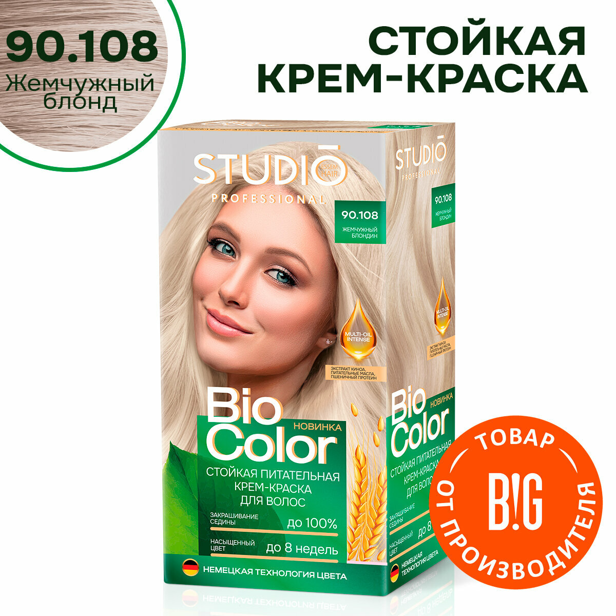 Купить Стойкая крем-краска для волос 90.108 "Жемчужный блондин", Studio Biocolor