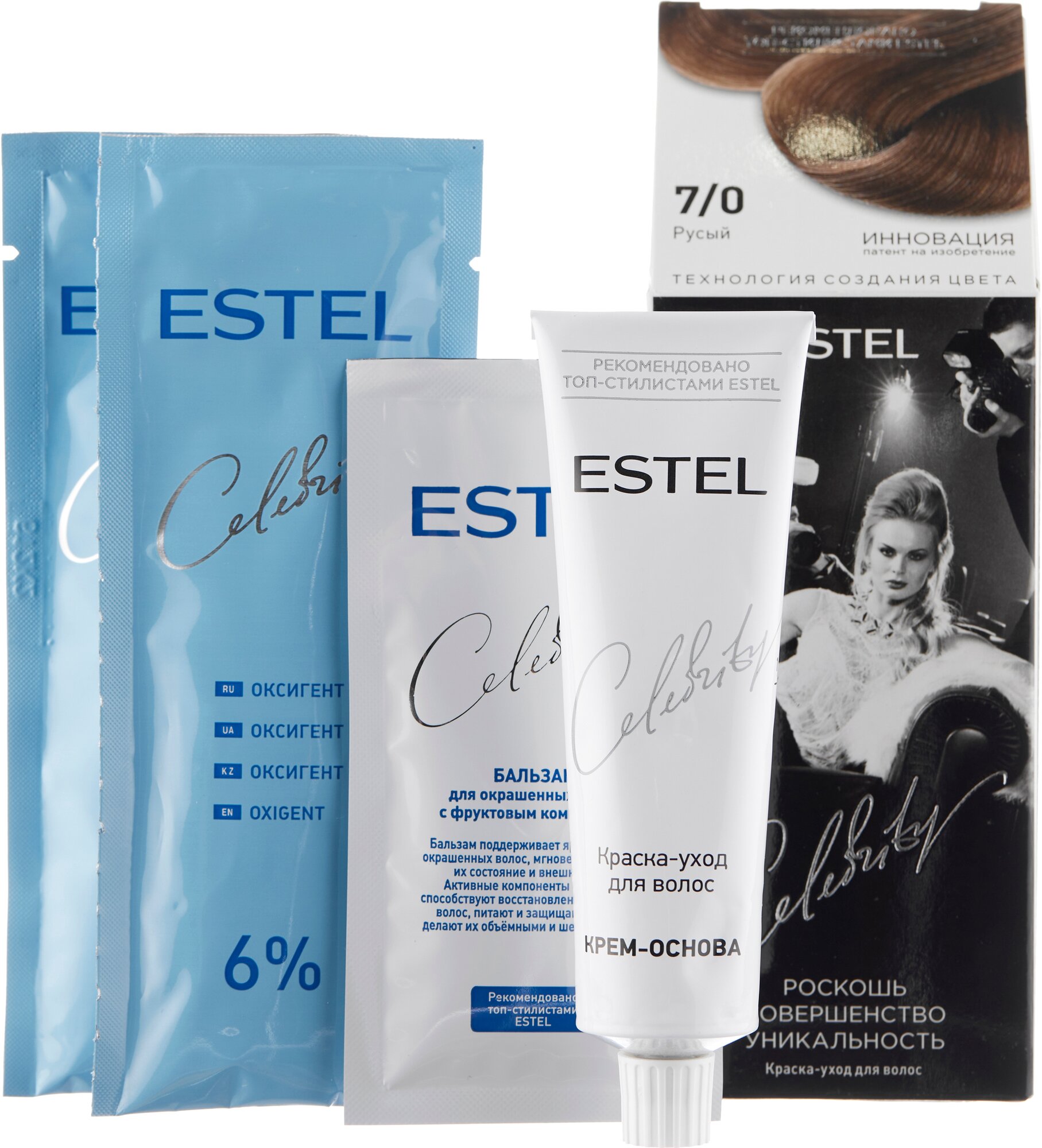 Ниже Вы можете прочитать отзывы на ESTEL Краска-уход для волос без аммиака "CELEBRITY", 7/0 Русый, 1 шт, ознакомится с подробными характеристиками, посмотреть интересные обзоры и фотографии на ESTEL Краска-уход для волос без аммиака "CELEBRITY", 7/0 Русый, 1 шт.