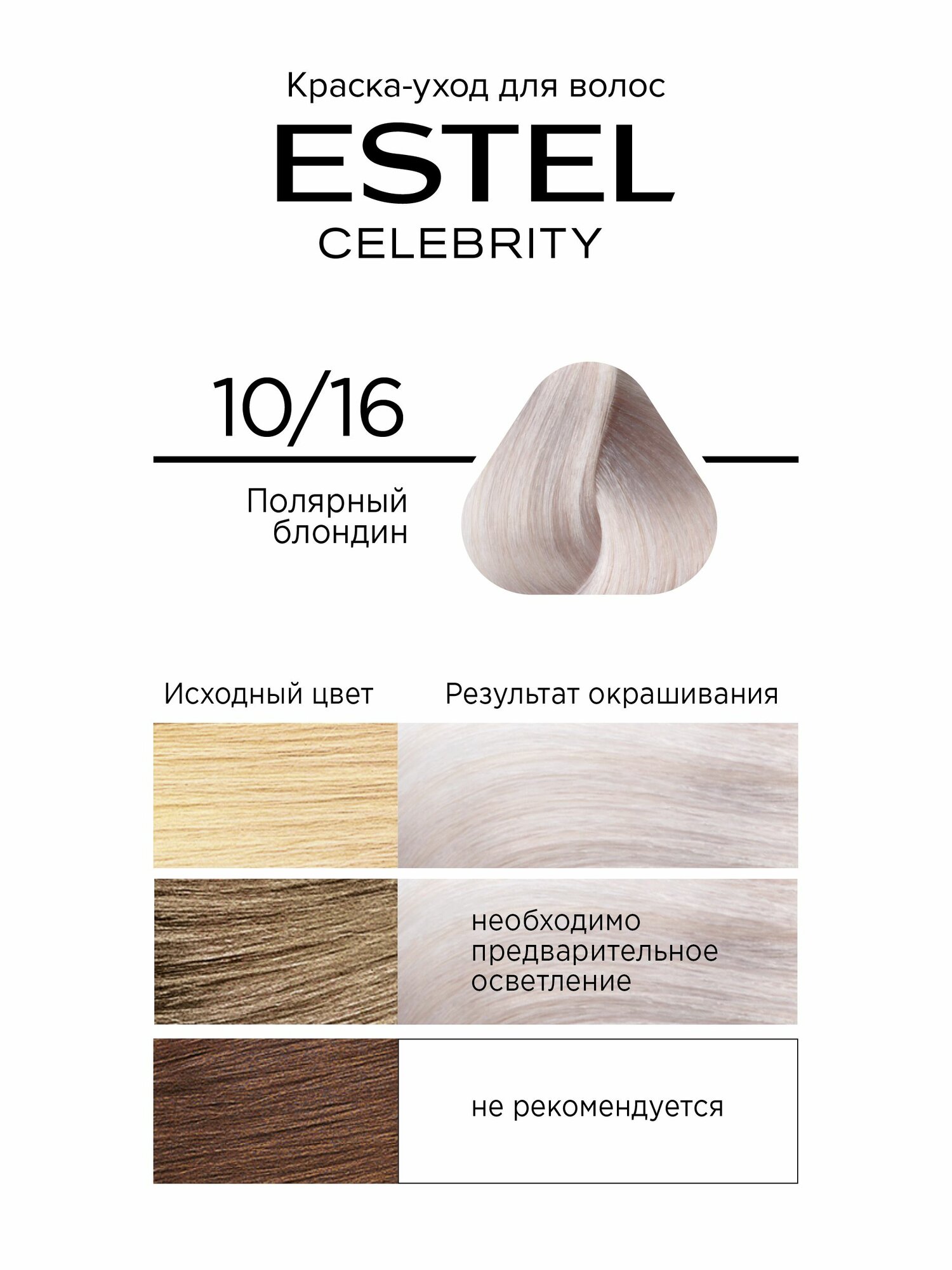 СохранитьEstel Краска-уход без аммиака CELEBRITY, тон 10/16 Полярный блондин (набор, 2шт.) интересное: