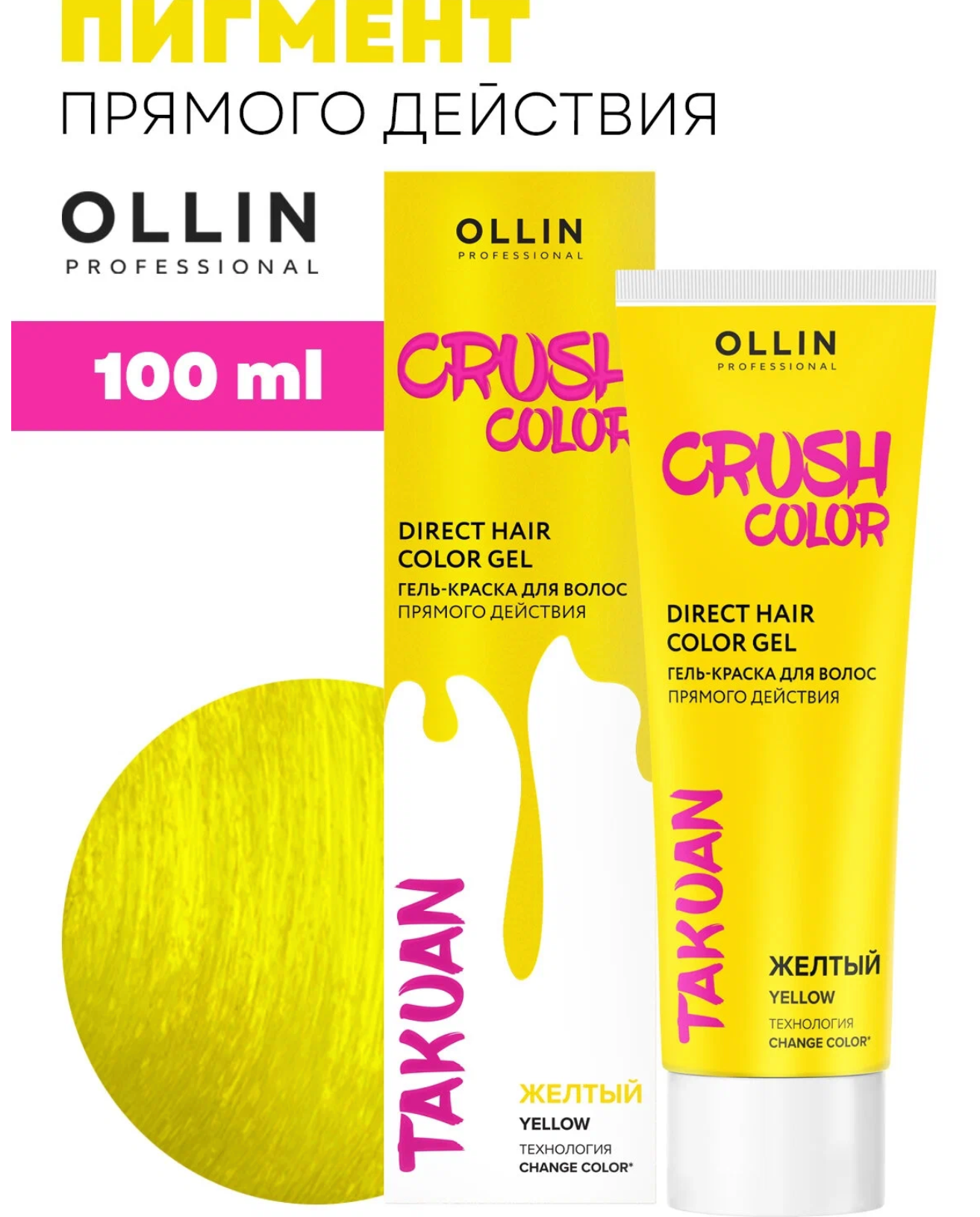 Купить Оллин / Ollin Professional - Гель-краска для волос Crush Color Takuan Желтый 100 мл