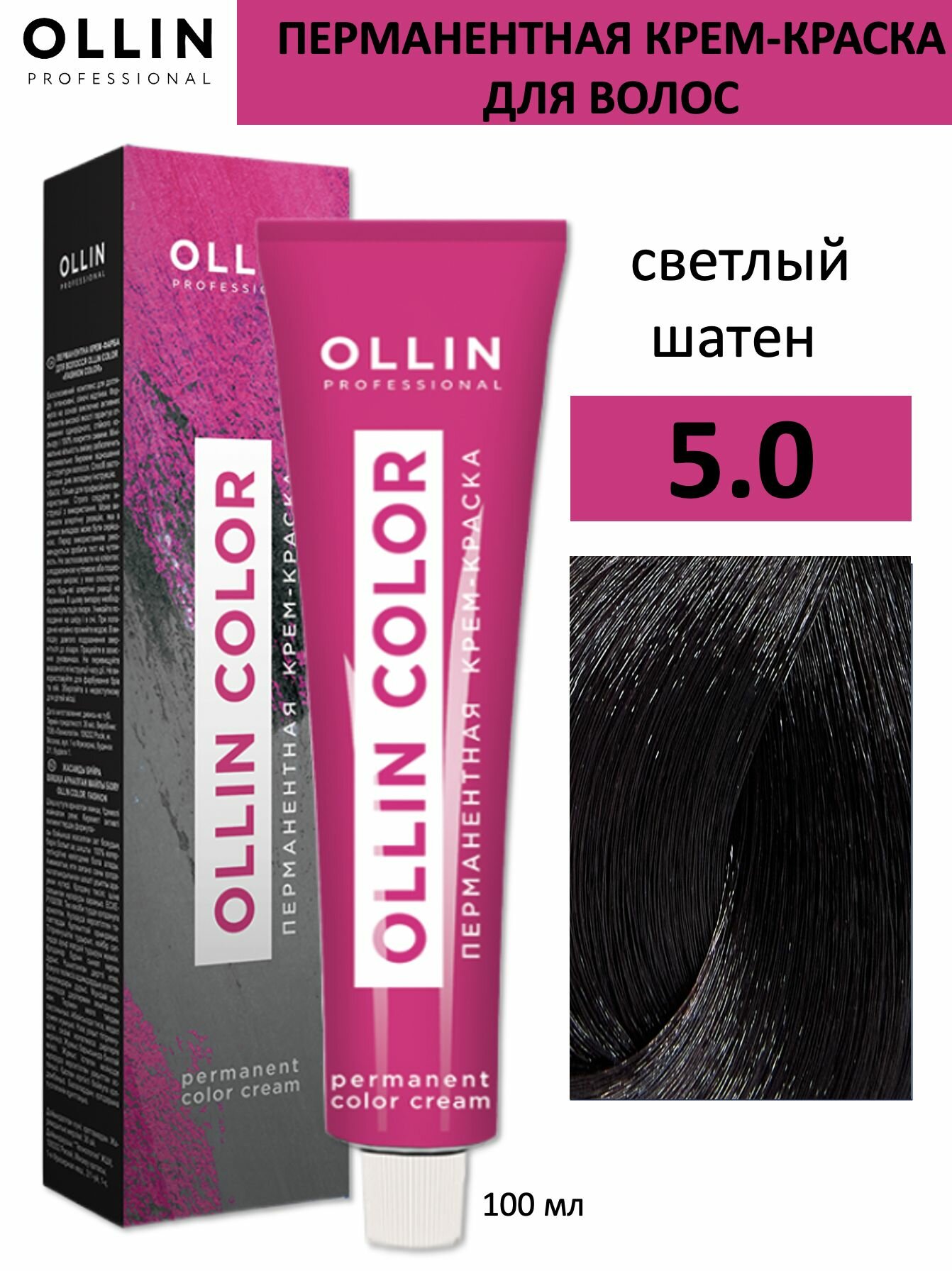 Купить Ollin Color - Оллин Колор Стойкая крем-краска для волос, 100 мл - OLLIN COLOR 5/0 светлый шатен