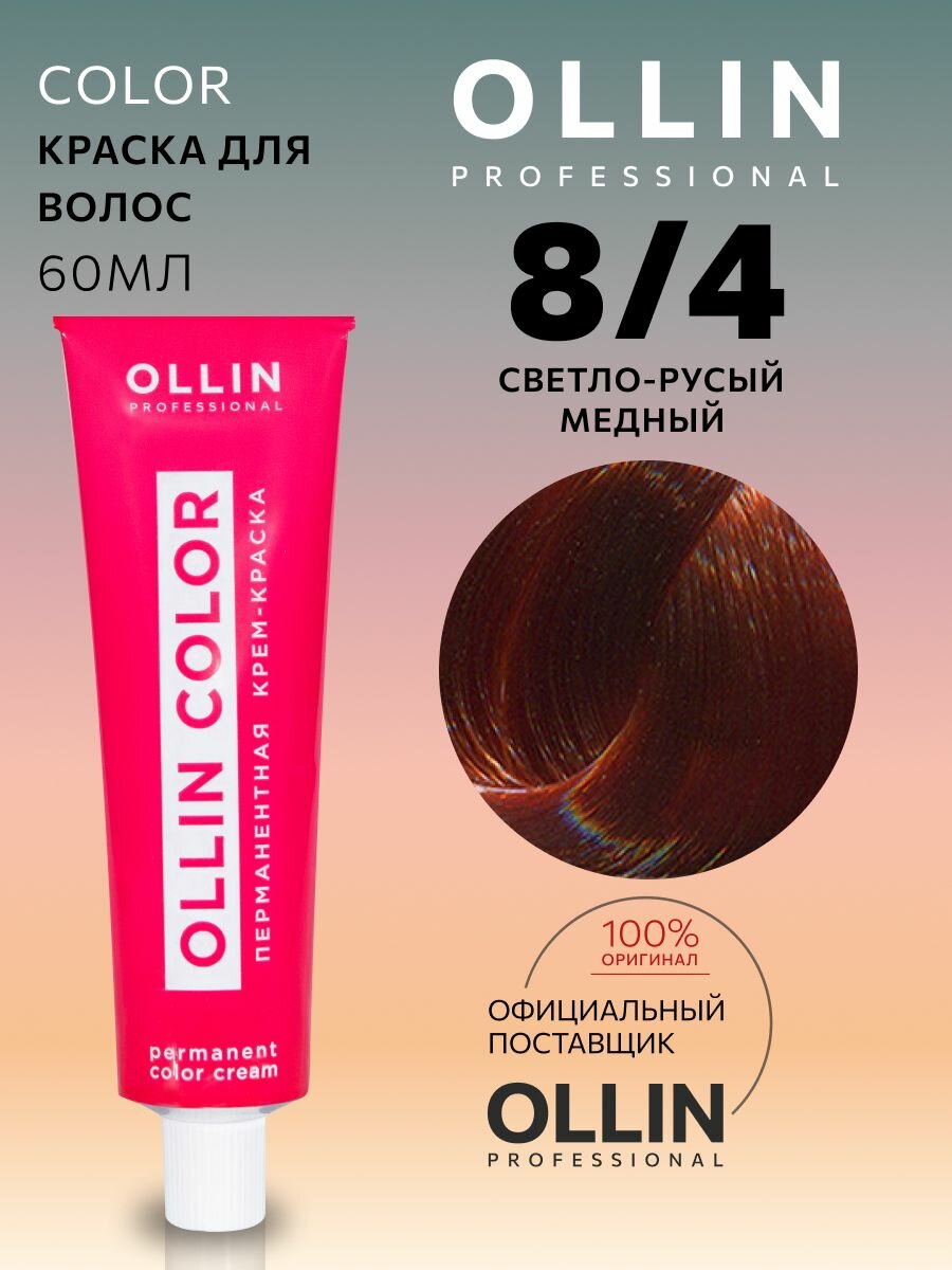 Купить Ollin Color - Оллин Колор Стойкая крем-краска для волос, 100 мл - OLLIN COLOR 8/4 светло-русый медный