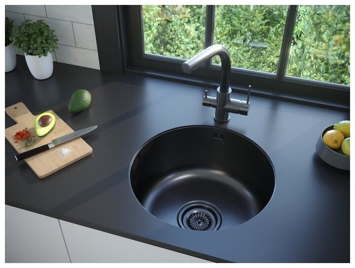 Мойка кухонная Zorg SZR-500 GRAFIT графит черная, круглая, толщина 1,5 мм