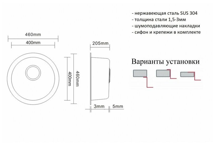 | Установка | врезная |