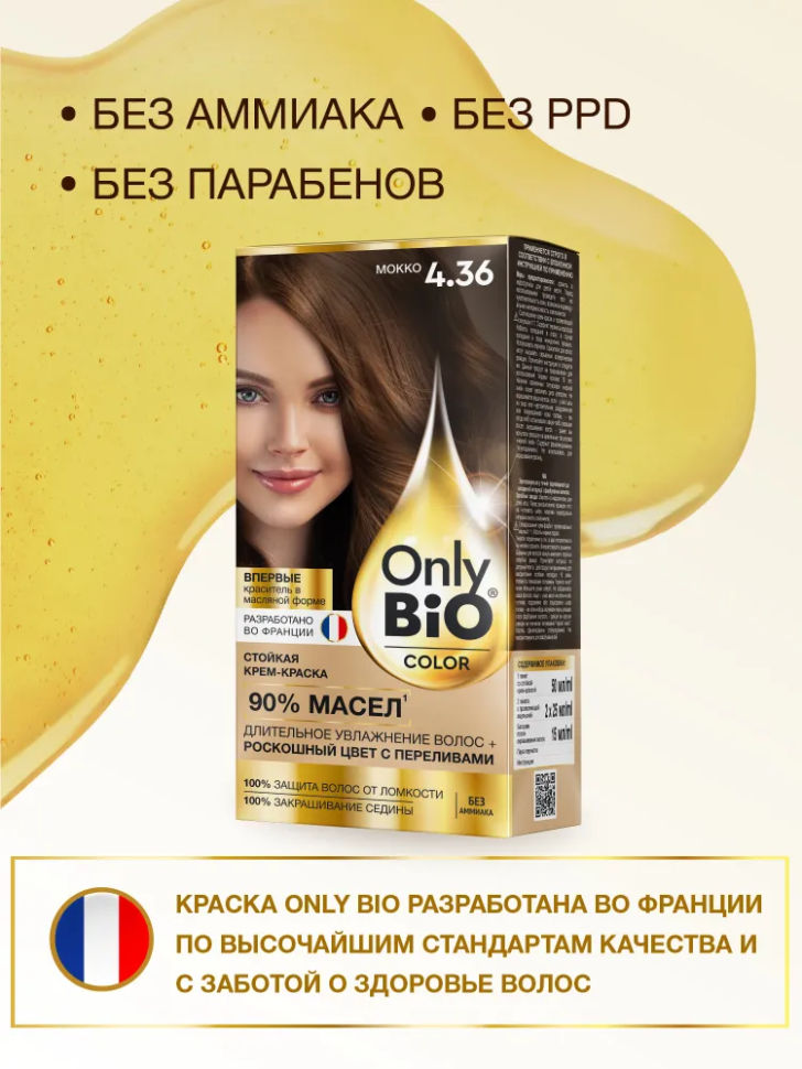 Only Bio Крем-краска для волос Color, 4.36 мокко, 115 мл