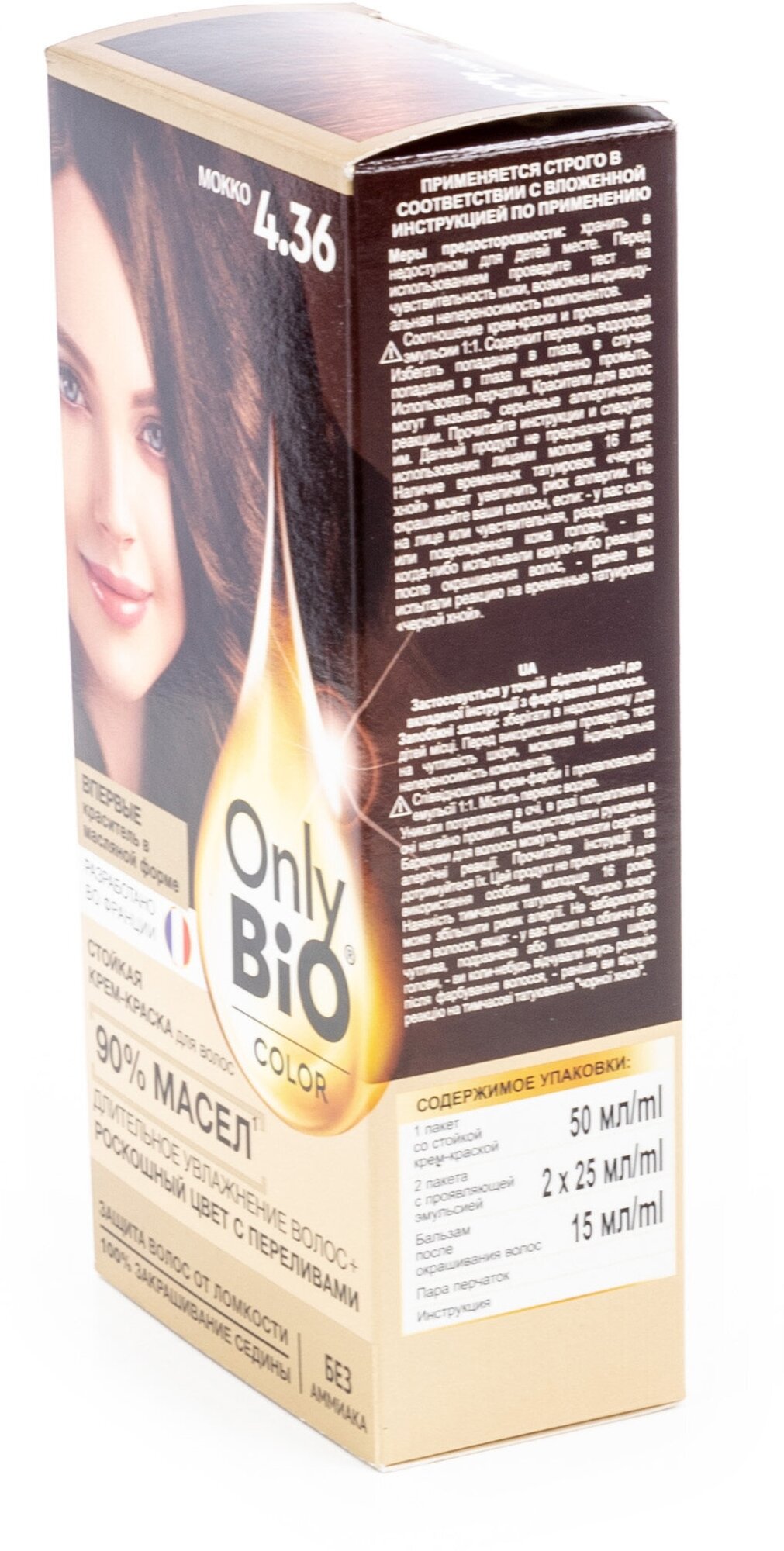 | Дополнительная информация | пакет со стойкой крем-краской - 50 мл, 2 пакета с проявляющей эмульсией - 25 мл (каждый), бальзам после окрашивания - 15 мл |