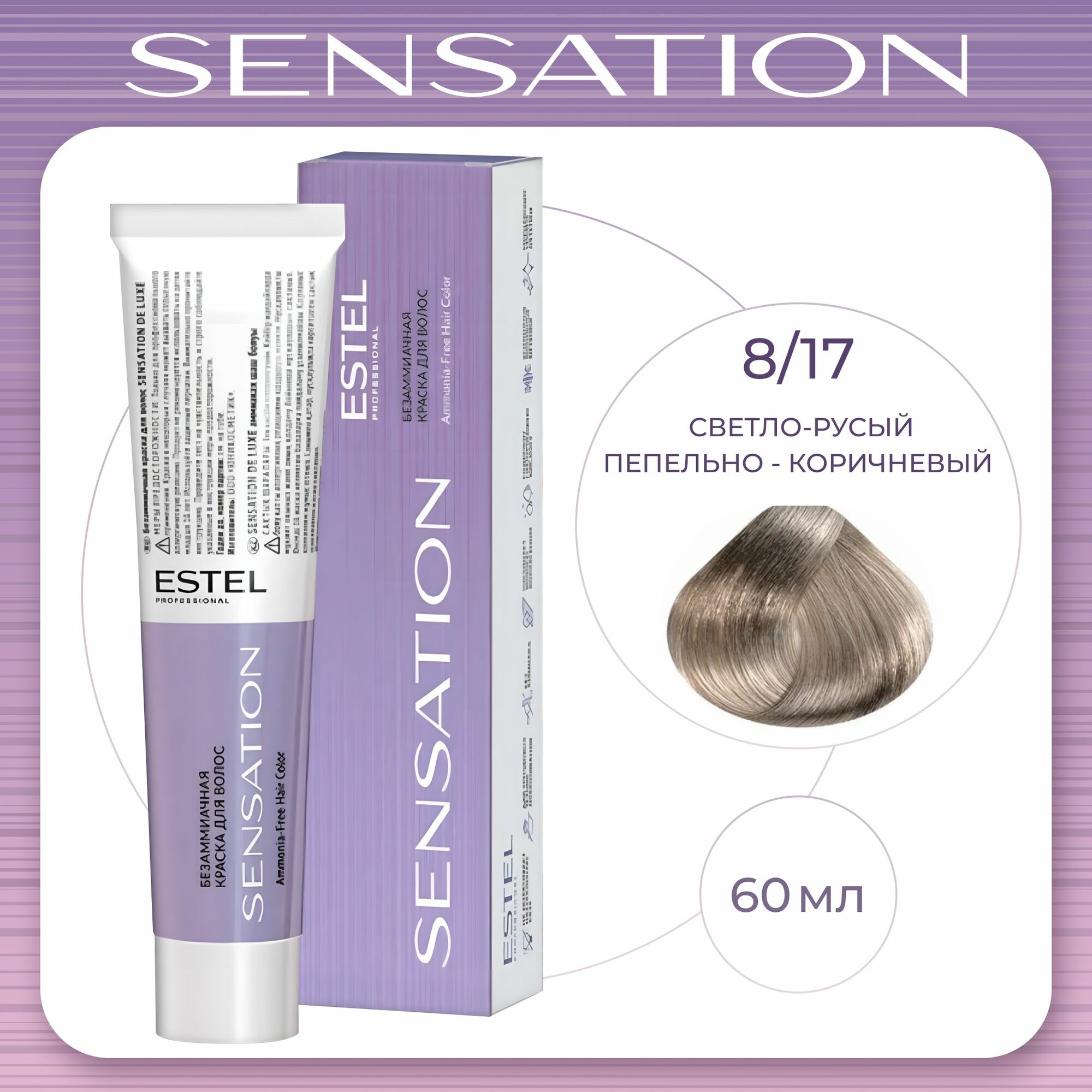 Купить ESTEL Sensation безаммиачная крем-краска для волос, 8/17 светло-русый пепельно-коричневый, 60 мл