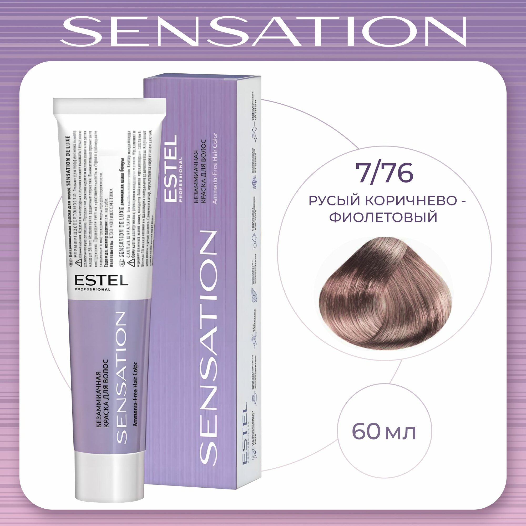 ESTEL Sensation безаммиачная крем-краска для волос, 8/76 светло-русый коричнево-фиолетовый, 60 мл