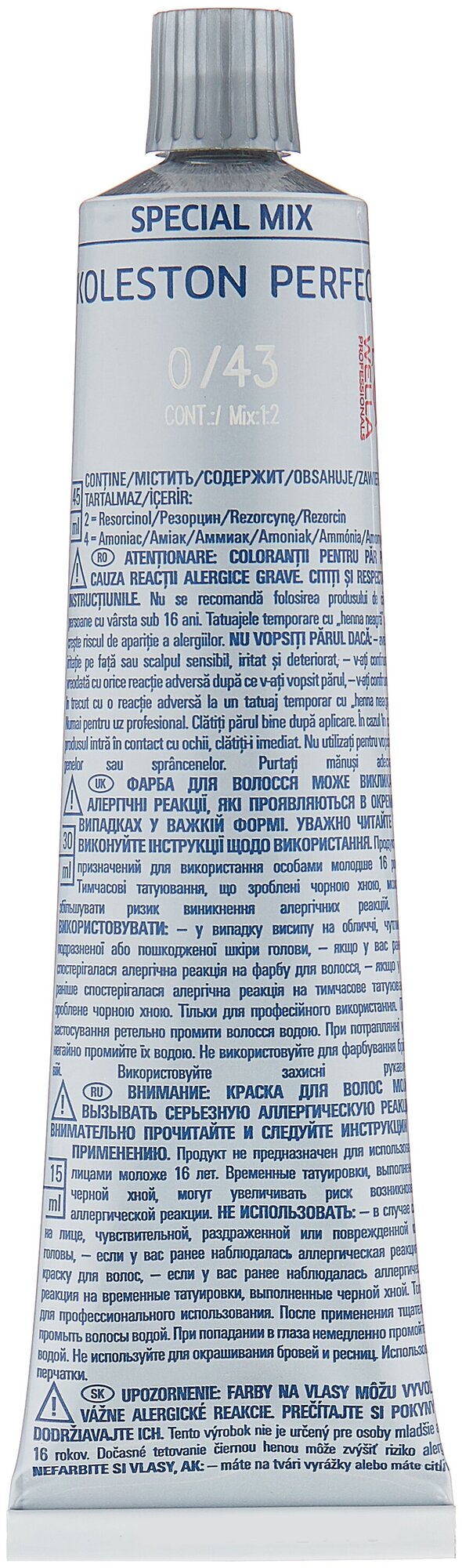 Стойкая крем-краска серии Wella Professionals Koleston Perfect Special Mix 0/43, 60 мл