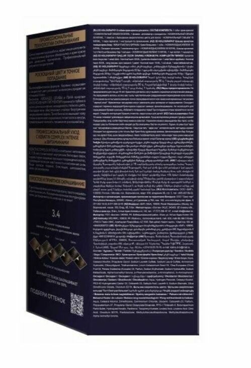 Комплект 3D HOLOGRAPHY для окрашивания волос STUDIO PROFESSIONAL 3.4 горький шоколад 2*50+15 мл