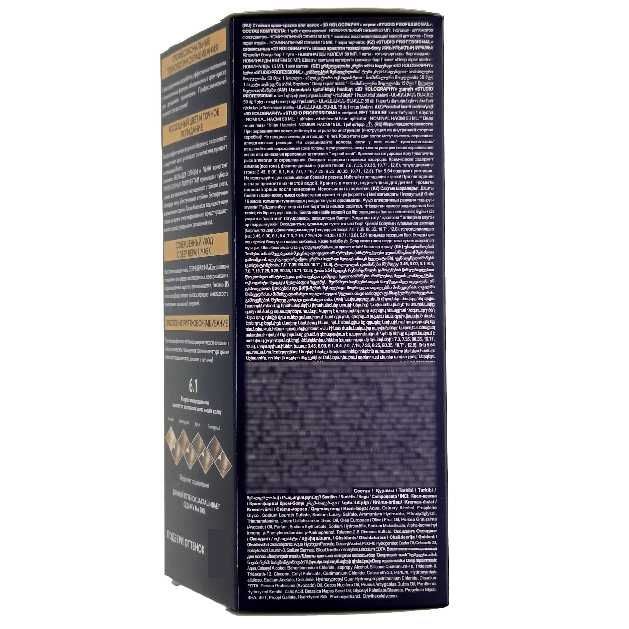 Стойкая крем-краска для волос Studio 3D Holography, тон 6.1 Пепельно-русый, 115 мл, 3 шт