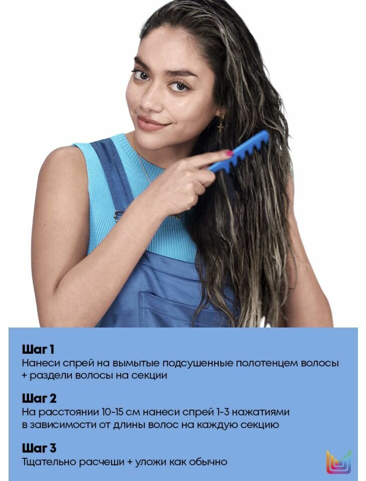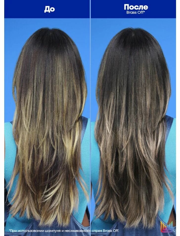 | Способ применения | Наносите спрей на вымытые подсушенные полотенцем волосы, предварительно разделив их на секции. С расстояния 10-15 см нанесите спрей 1-3 нажатиями в зависимости от длины и густоты волос на каждую секцию. Тщательно расчешите, уложите как обычно. Можно использовать отдельно или после шампуня, кондиционера или маски Brass Off. Спрей содежит синий пигмент. Будьте аккуратны при нанесении: может оставить следы на одежде. |