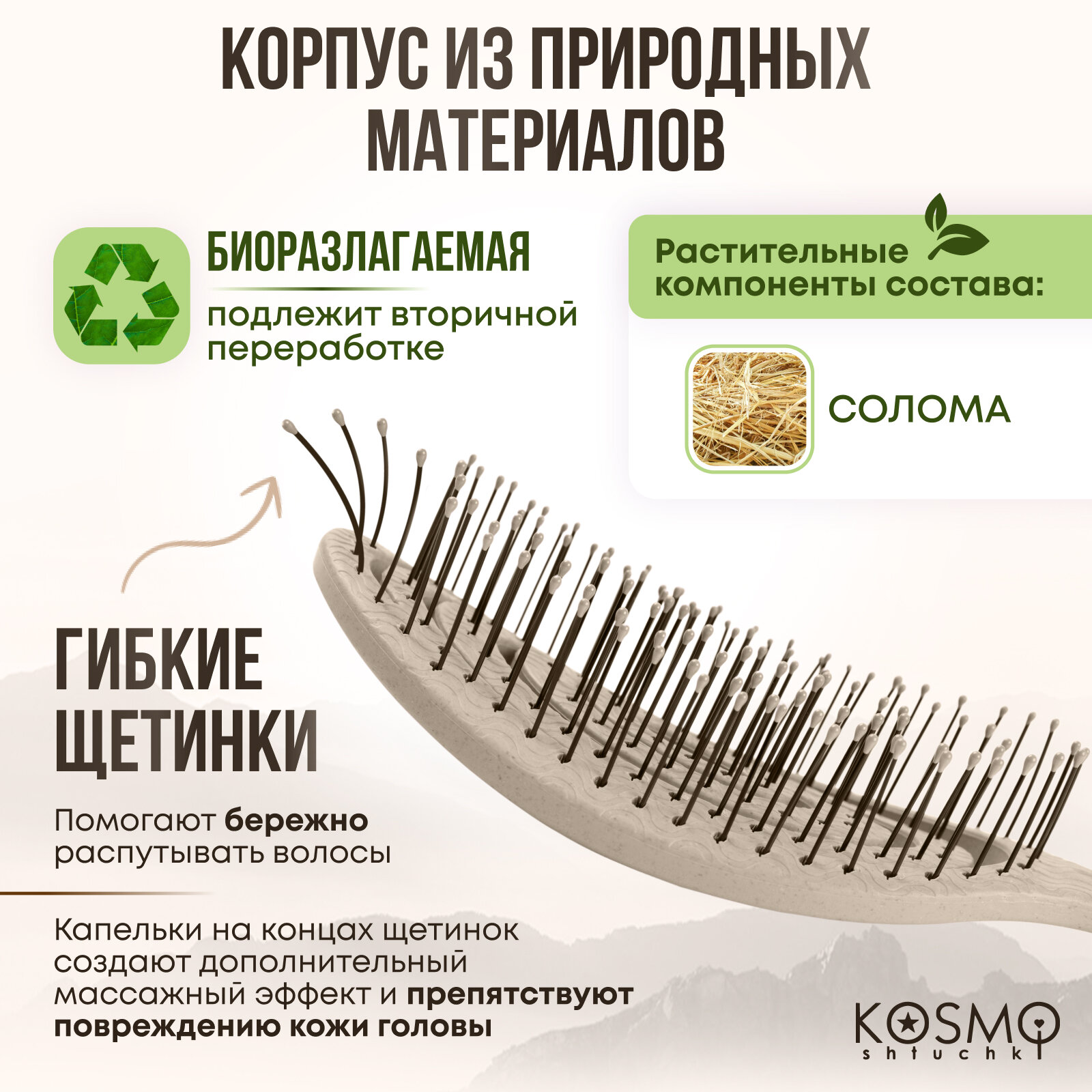 | Особенности | биоразлагаемая / для влажных волос / для вьющихся волос / для распутывания волос / продувная |