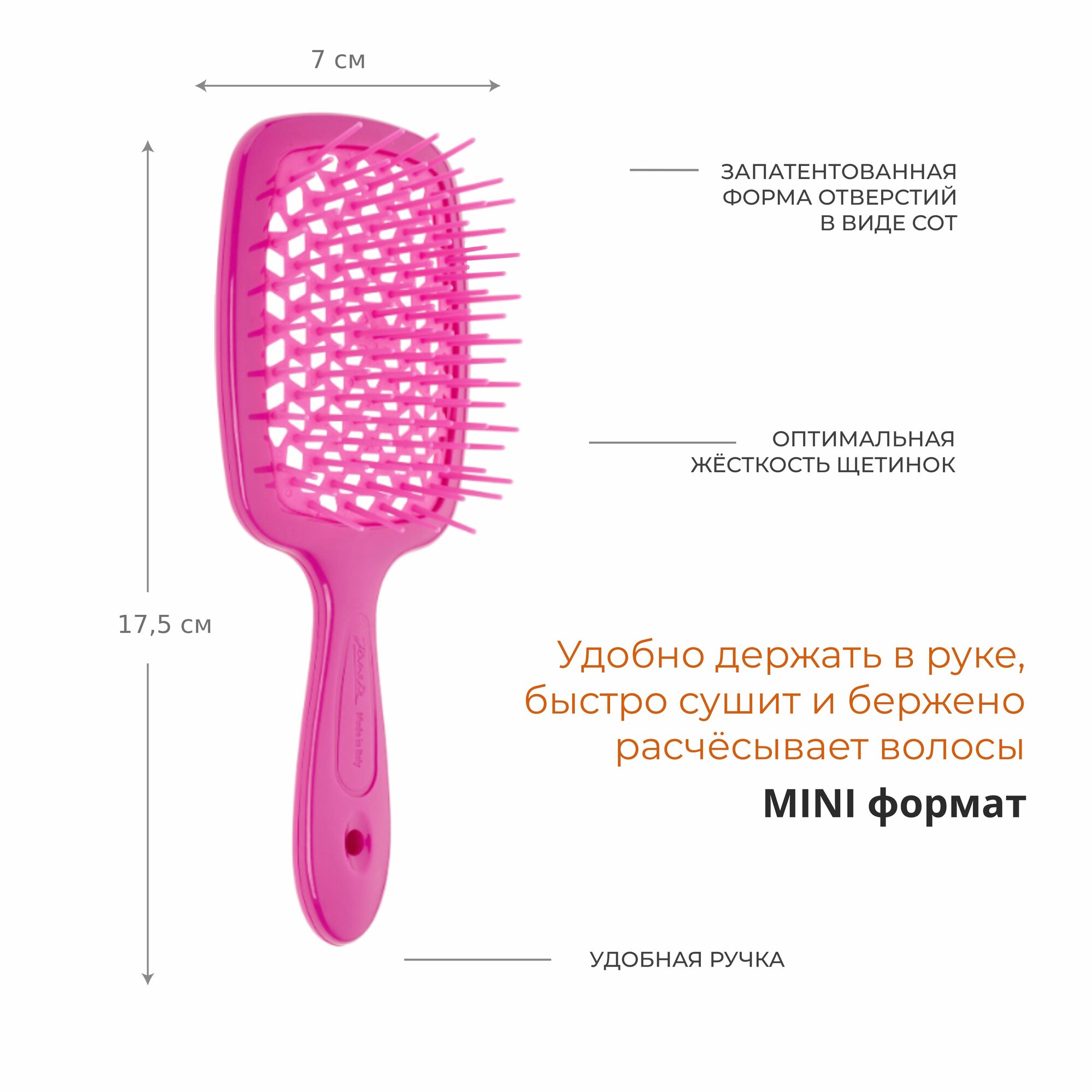 Janeke SUPERBRUSH Щетка для волос малая, 83SP234FF2, флуоресцентный розовый, 17,5x7x3 см