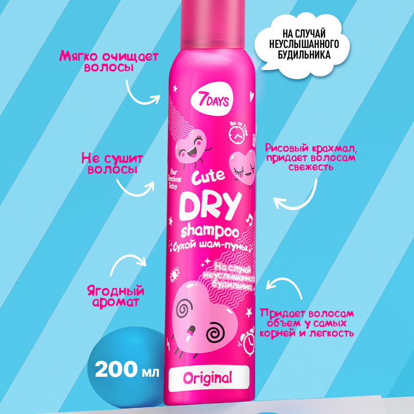 Сухой шампунь для волос 7DAYS CUTE + кондиционер 2в1, 200 мл.