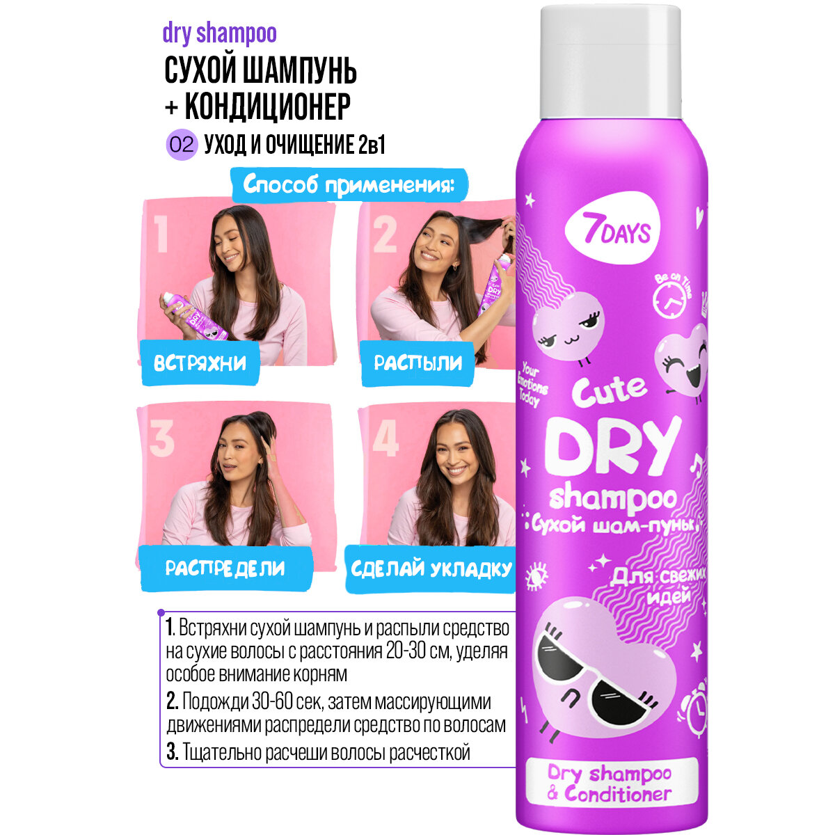 Сухой шампунь для волос 7DAYS CUTE + кондиционер 2в1, 200 мл.