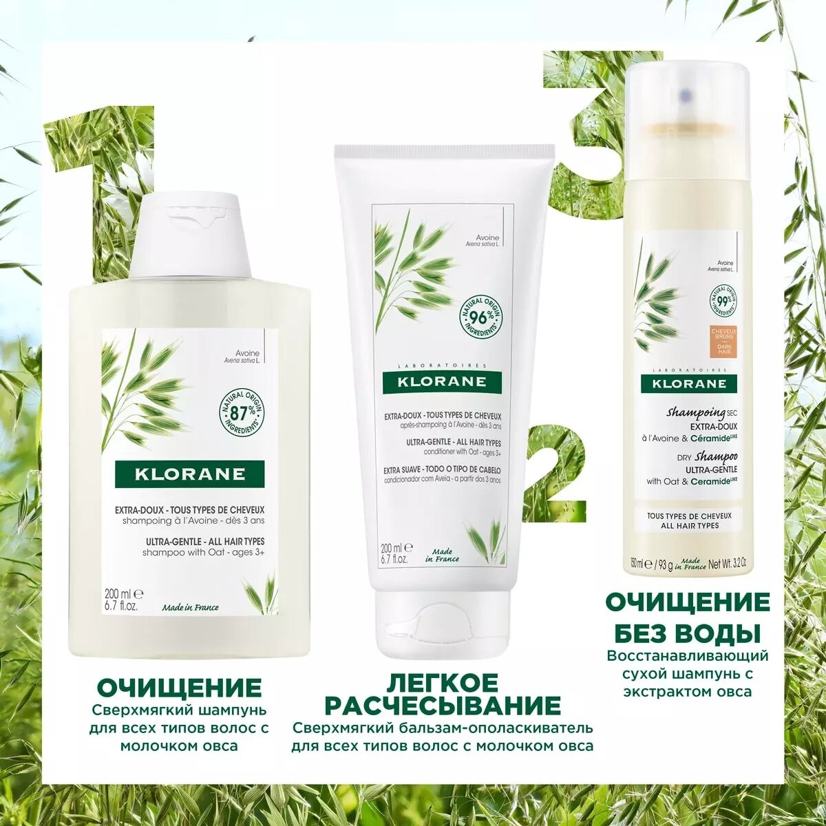 KLORANE Восстанавливающий сухой тонированный шампунь с экстрактом овса, 50 мл