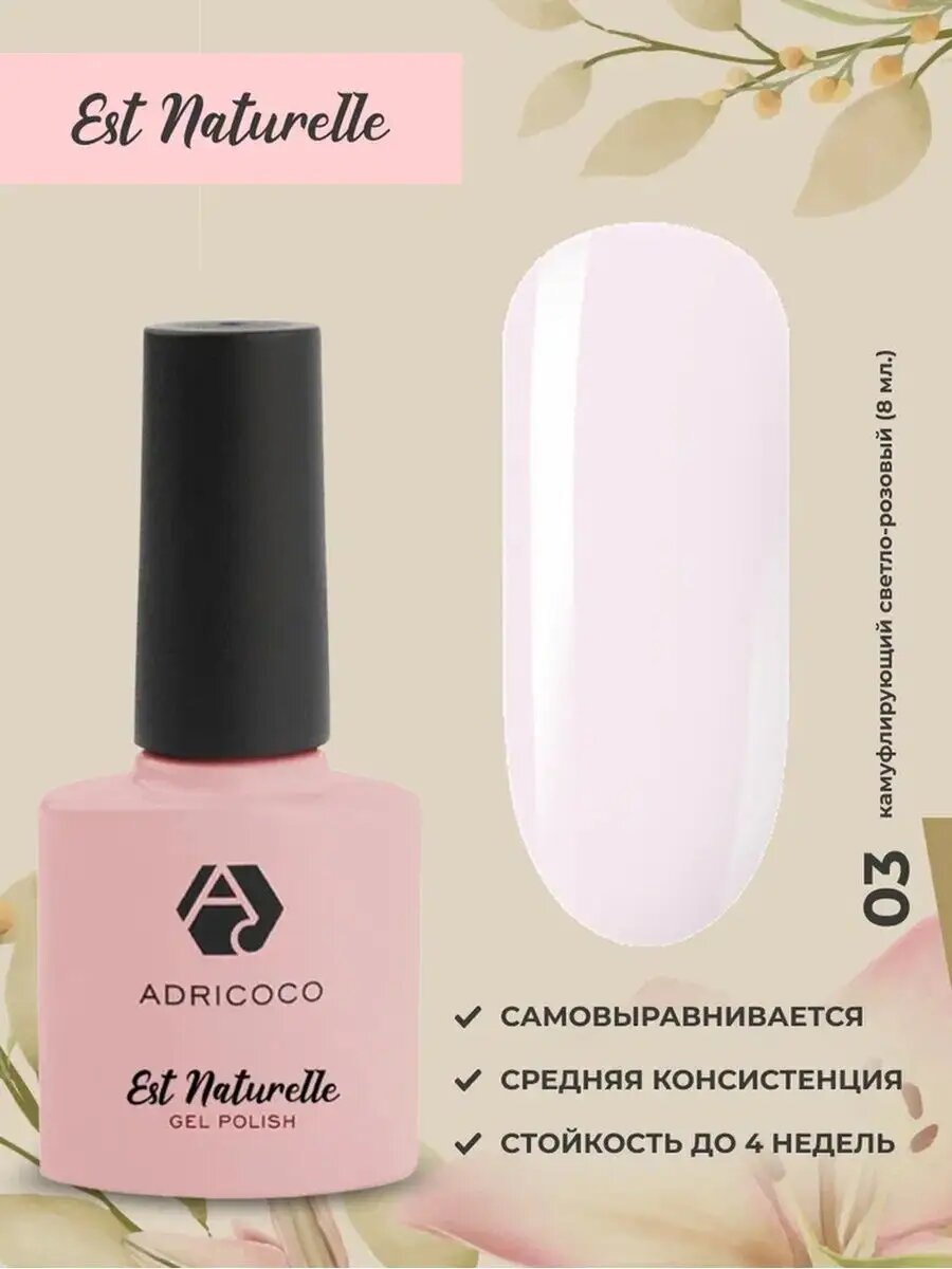 Гель-лак ADRICOCO камуфлирующий Est Naturelle №03 светло-розовый 8 мл