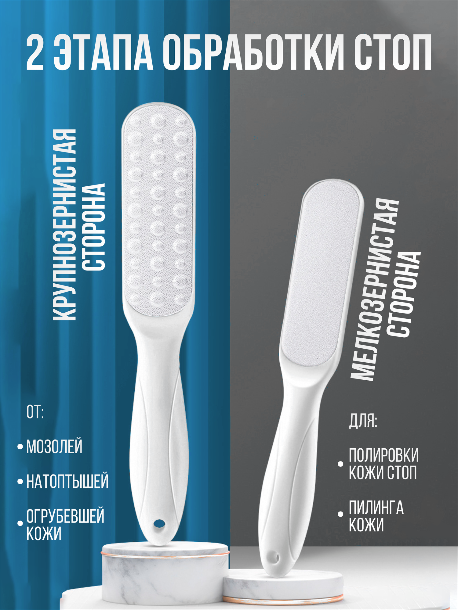 Двусторонняя терка-пилка для стоп и пяток / Педикюрная пилка против натоптышей , белая. интересное: