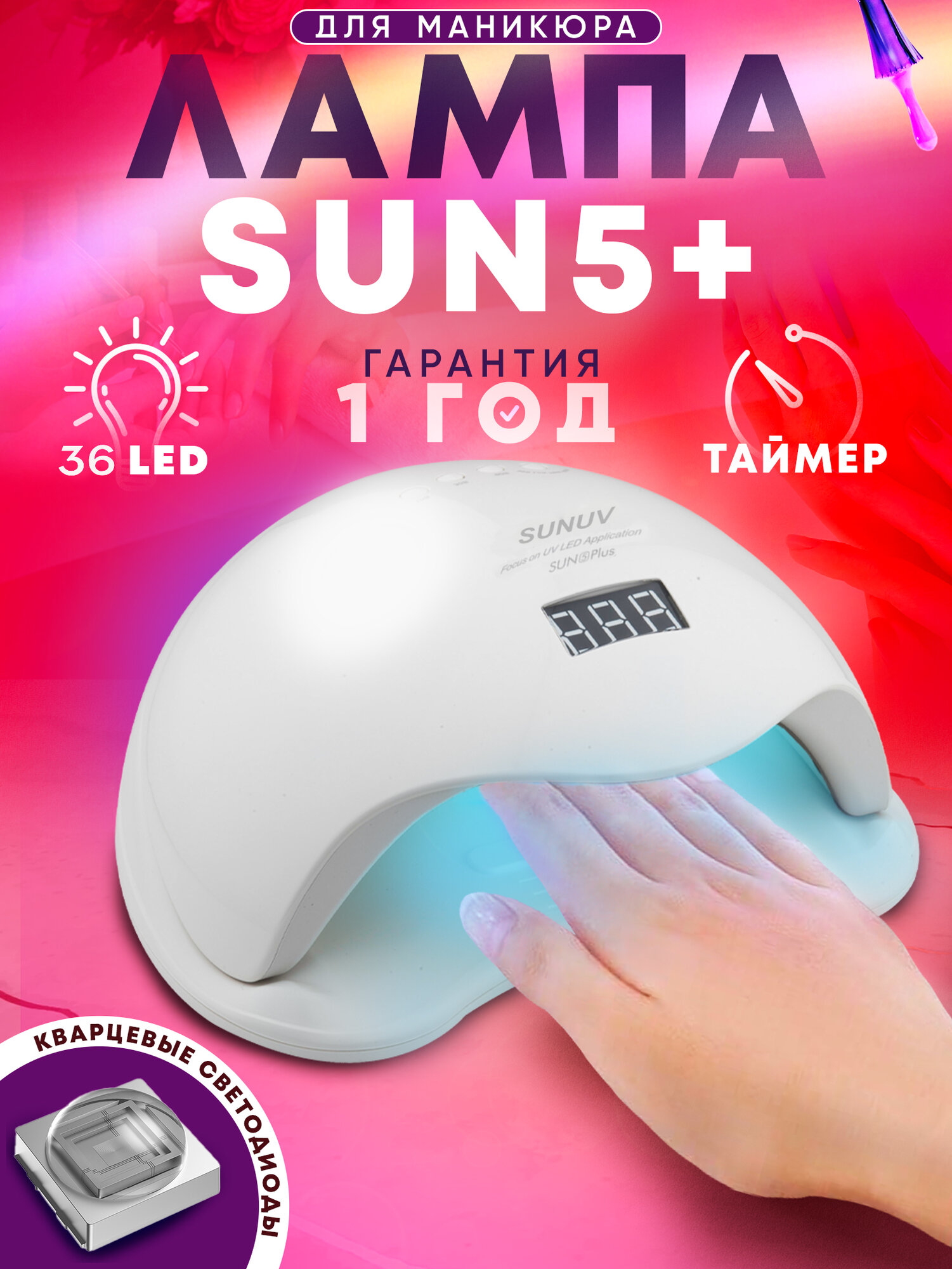 Лампа для маникюра SUNUV SUN5 Plus с кварцевыми диодами