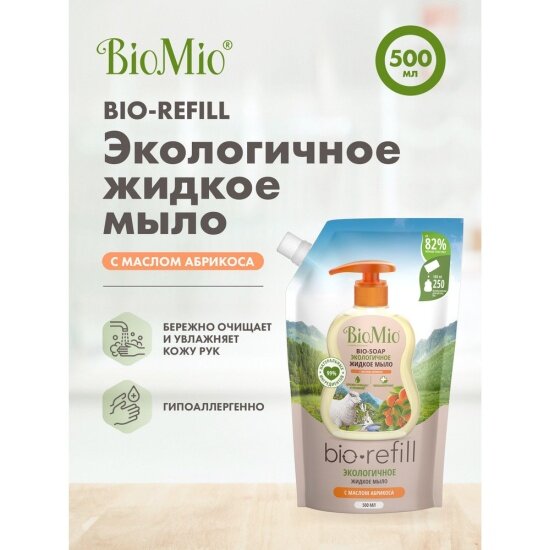 Экологичное жидкое мыло BioMio Bio-Soap с маслом абрикоса, сменный блок, 500 мл