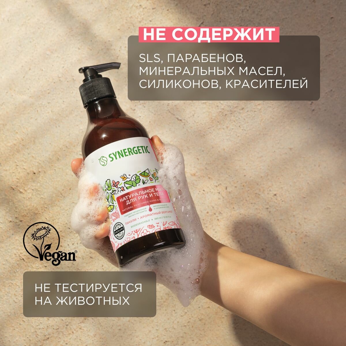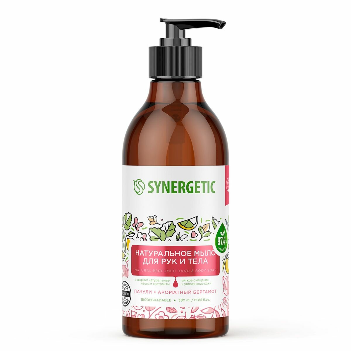 Жидкое мыло для рук и тела Synergetic Пачули и ароматный бергамот, 380 мл