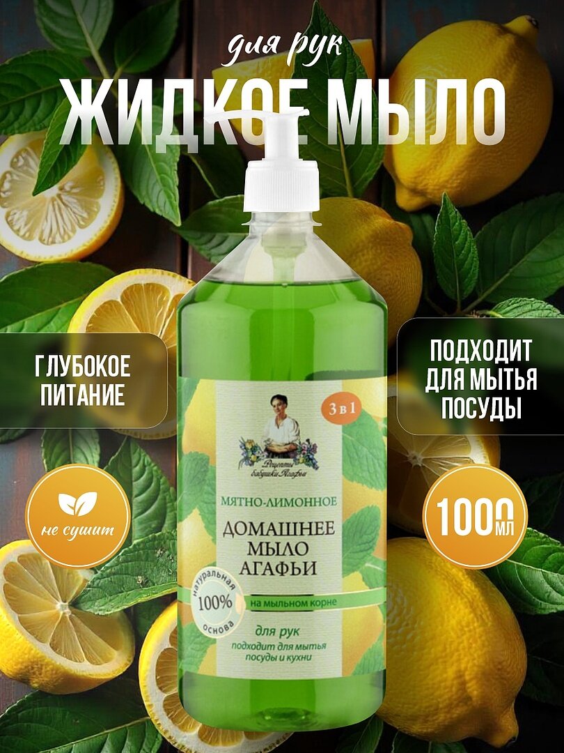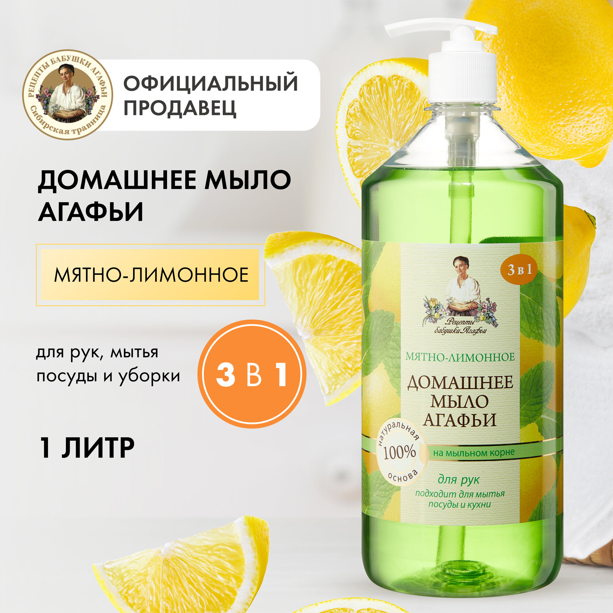 Мыло жидкое рецепты бабушки агафьи Домашнее Мятно-лимонное, 1л - 3 шт.