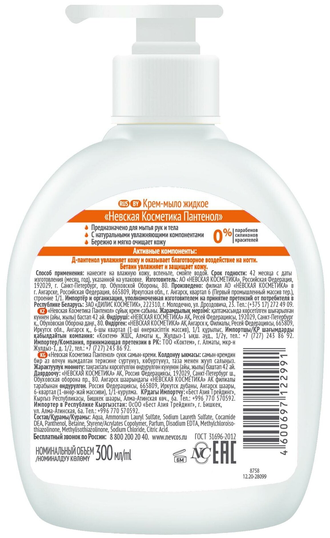 Купить Крем-мыло жидкое Невская косметика Пантенол 300 мл