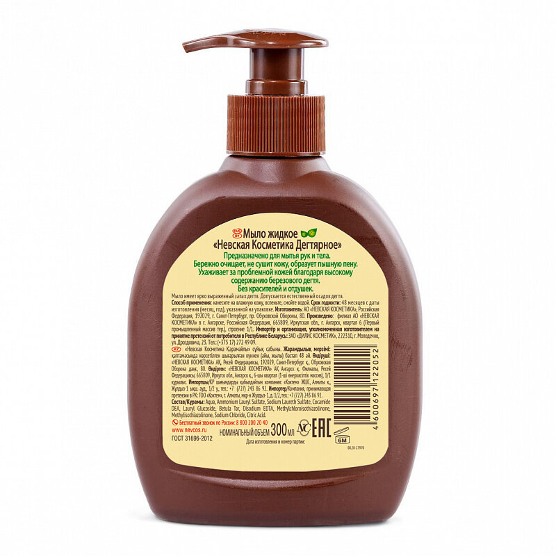 Мыло жидкое для рук и тела Невская Косметика невскaя косметика Дегтярное, 300 мл