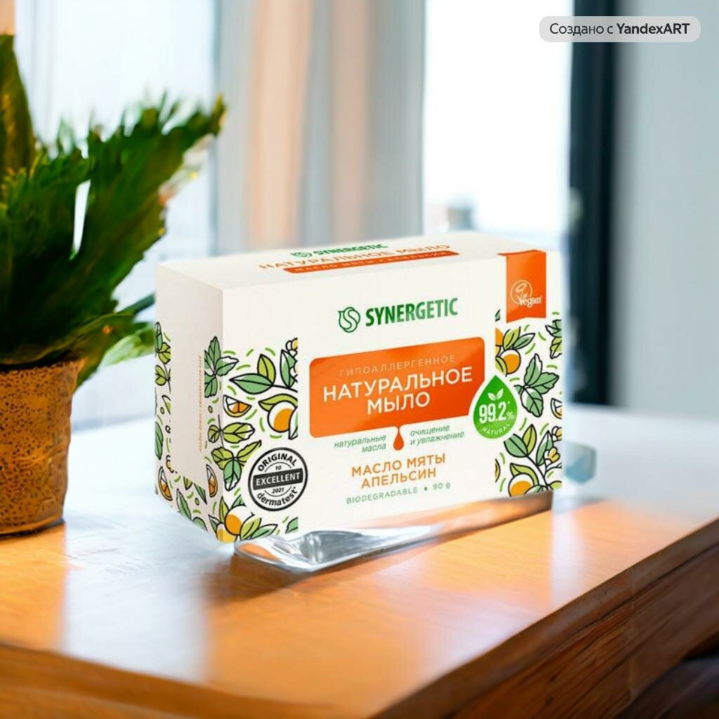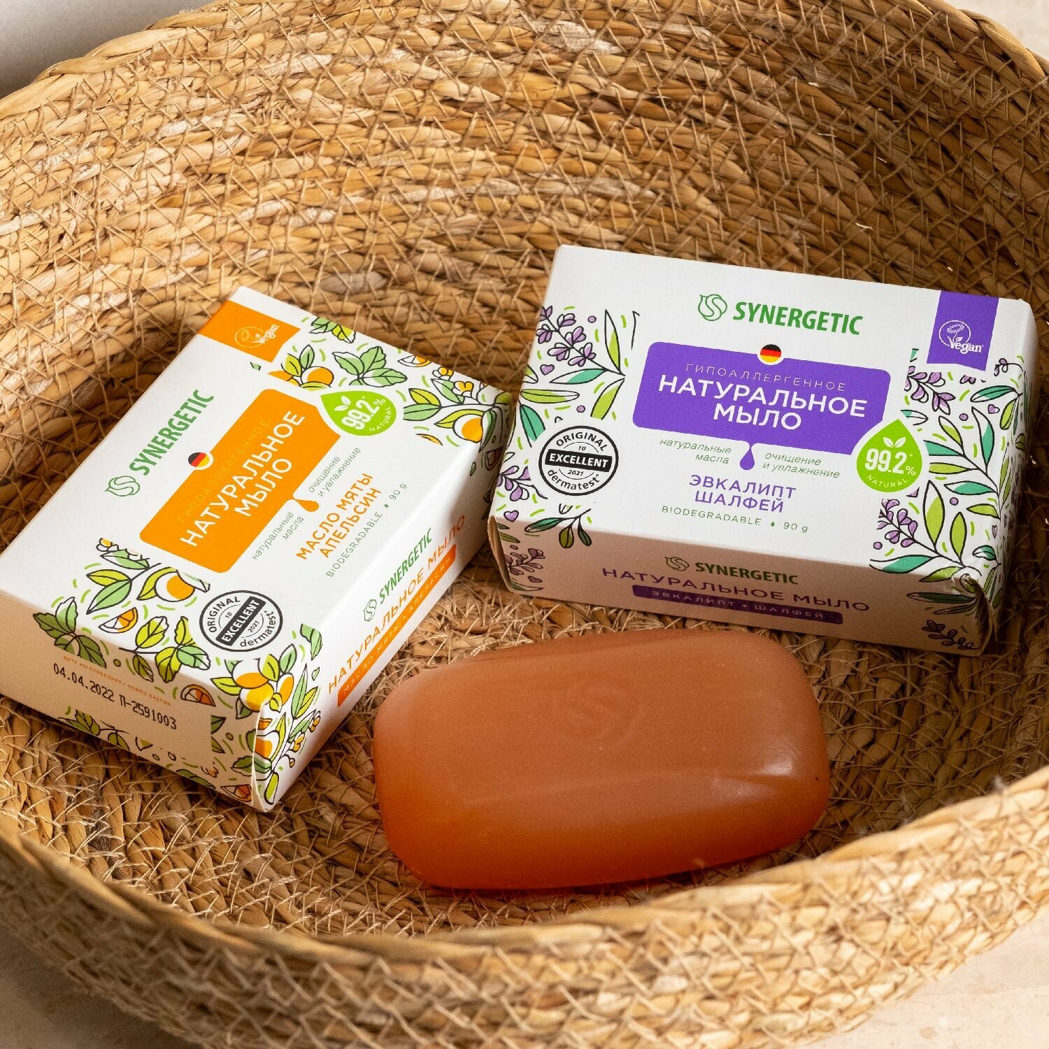 Гипоаллергенное натуральное туалетное мыло Synergetic масло мяты и апельсин, 90 г