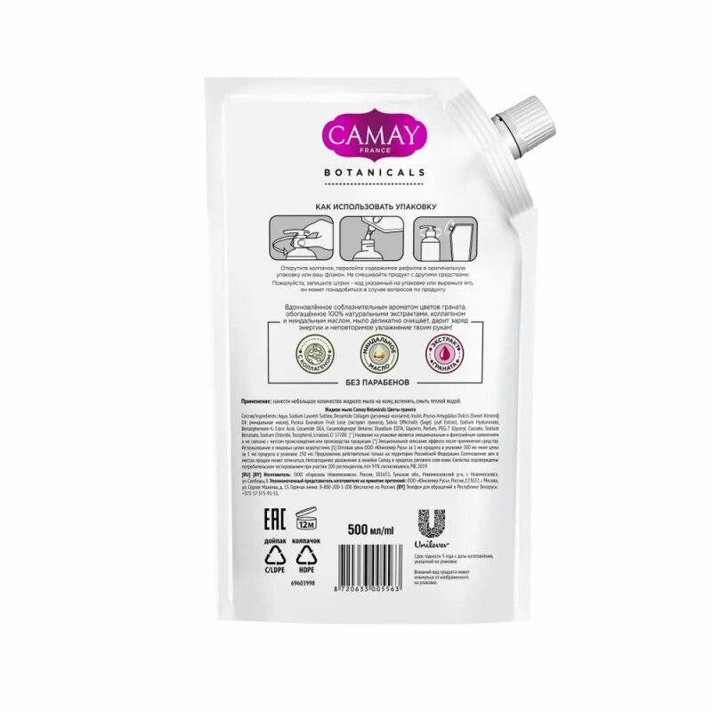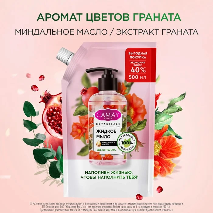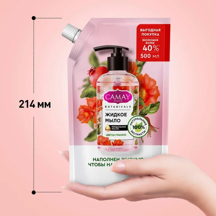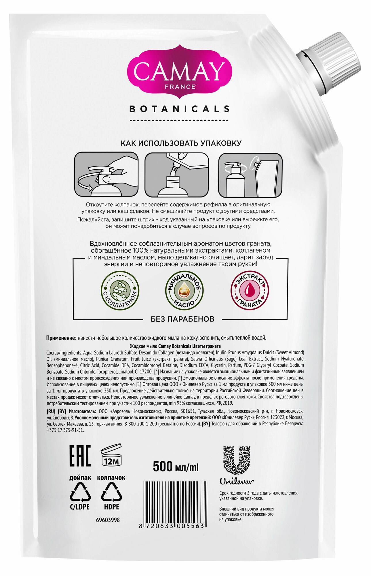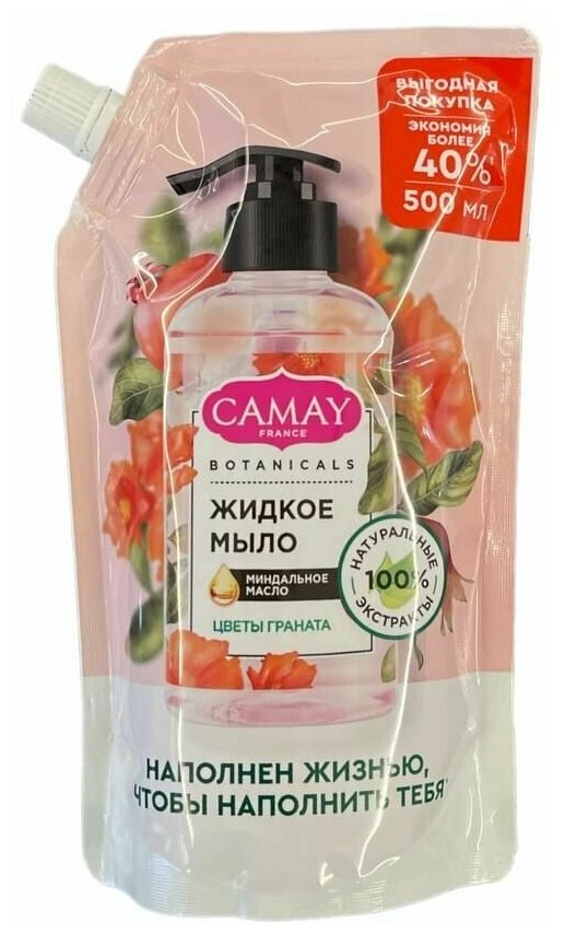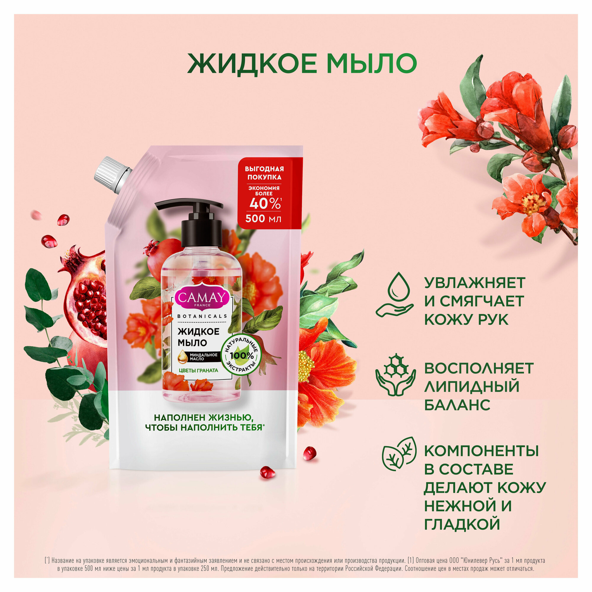 Купить Жидкое мыло Camay BOTANICALS Цветы граната, 500 мл (дой-пак)