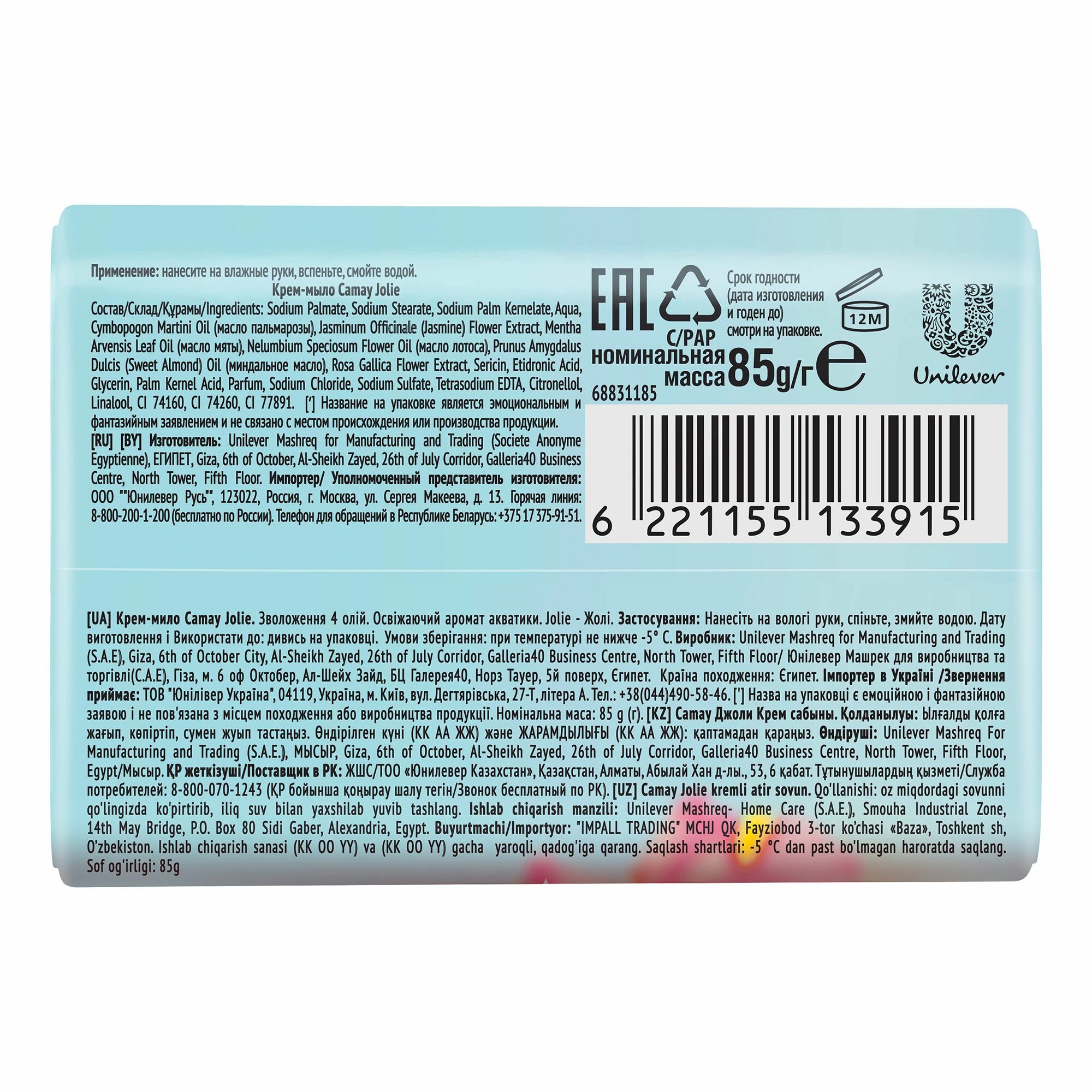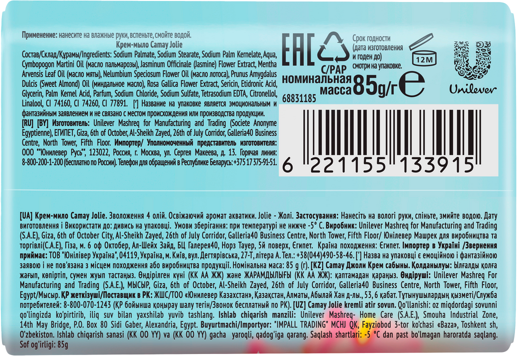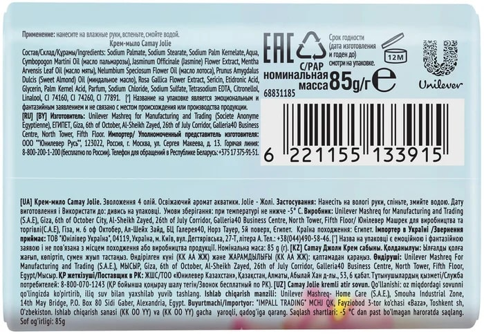 Мыло твердое туалетное CAMAY 85г JOLIE