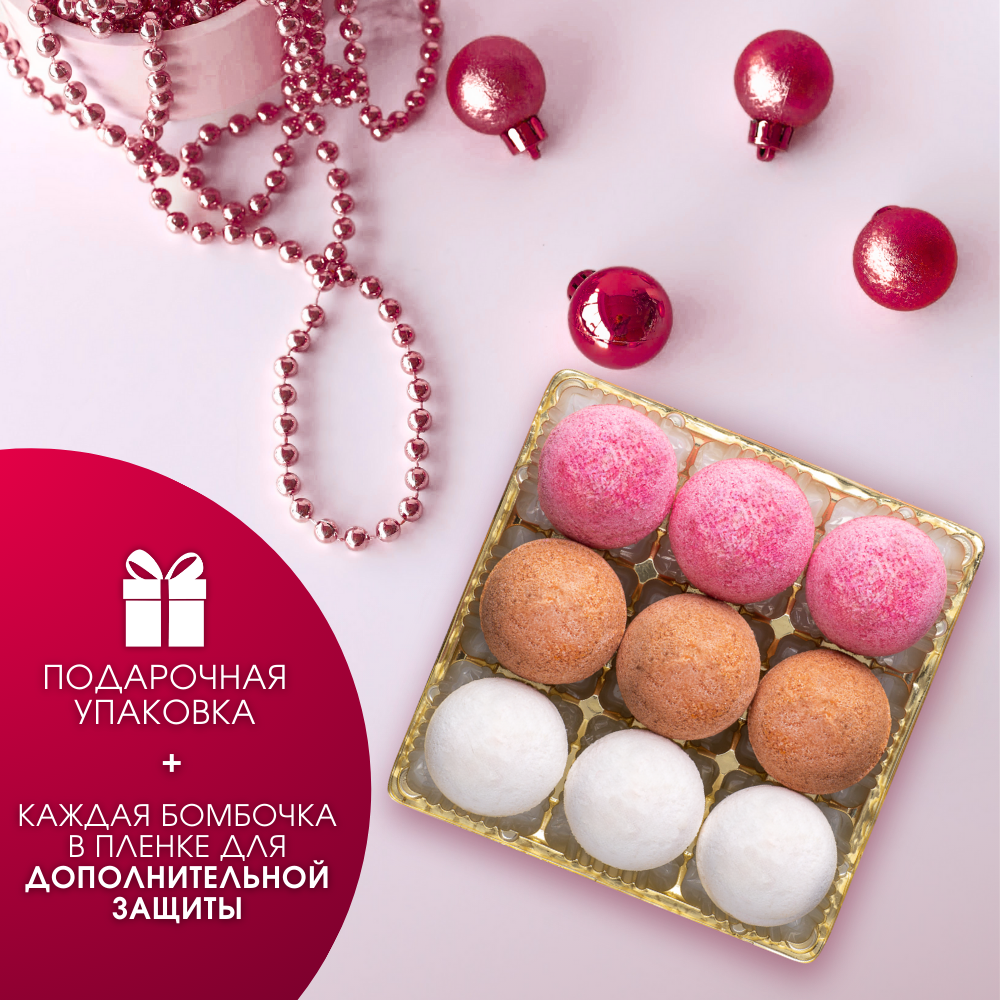 Бомбочки для ванны.Подарочный набор бурлящих шаров Candy bath bar "Love&Candy" 9шт по 40 г Подарок на новый год