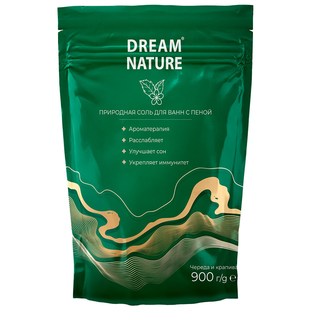Соль для ванн морская с пеной Dream Nature с ароматом череды и крапивы, 900 г