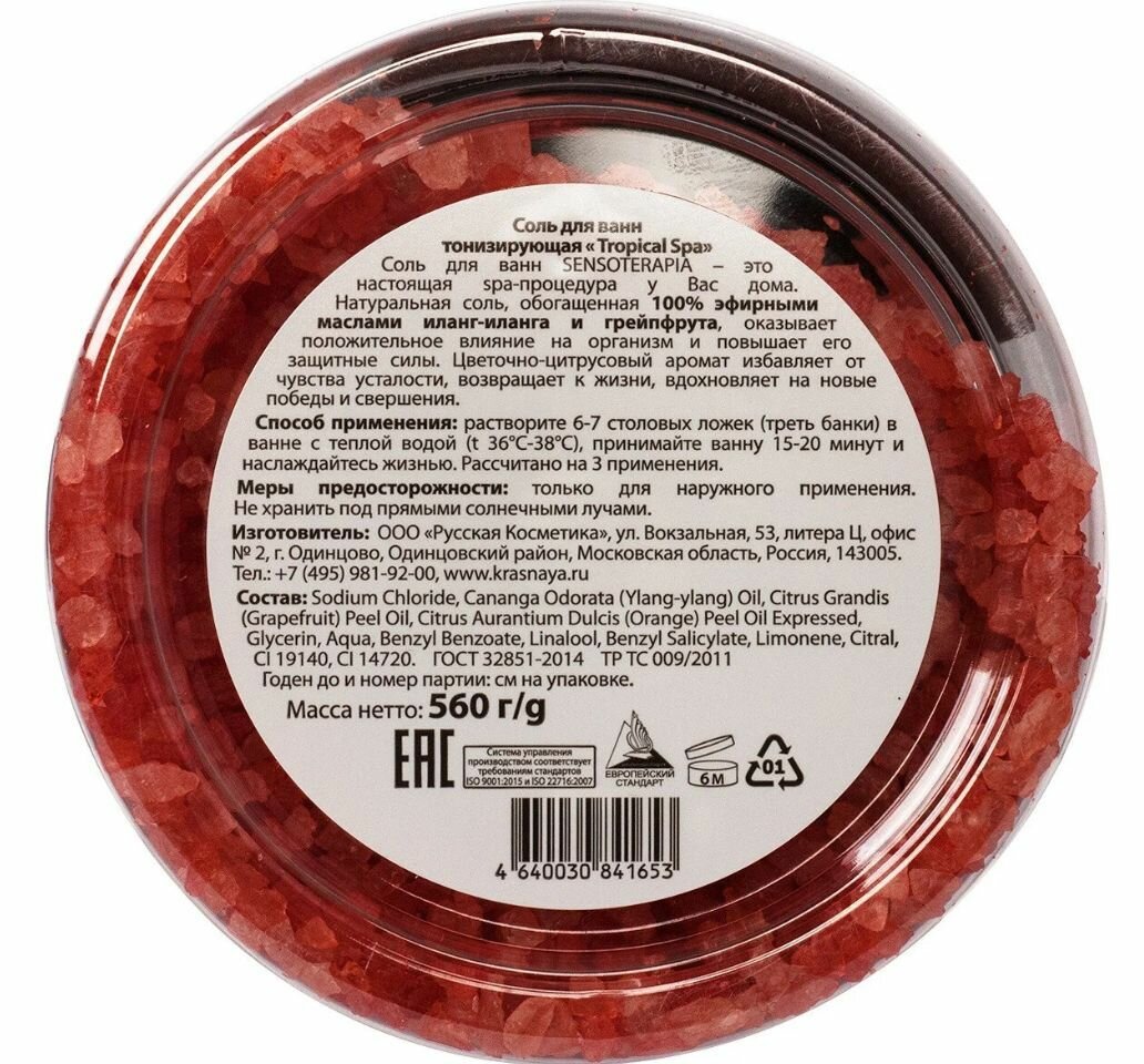 Senso Terapia Соль для ванн Tropical Spa Тонизирующая, 560 г, 560 мл