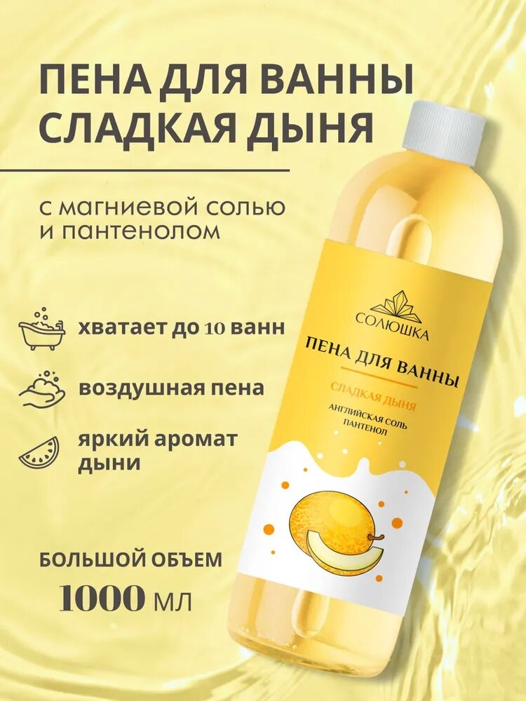 Пена для ванны Сладкая дыня с английской солью и пантенолом , 1000 мл. Солюшка
