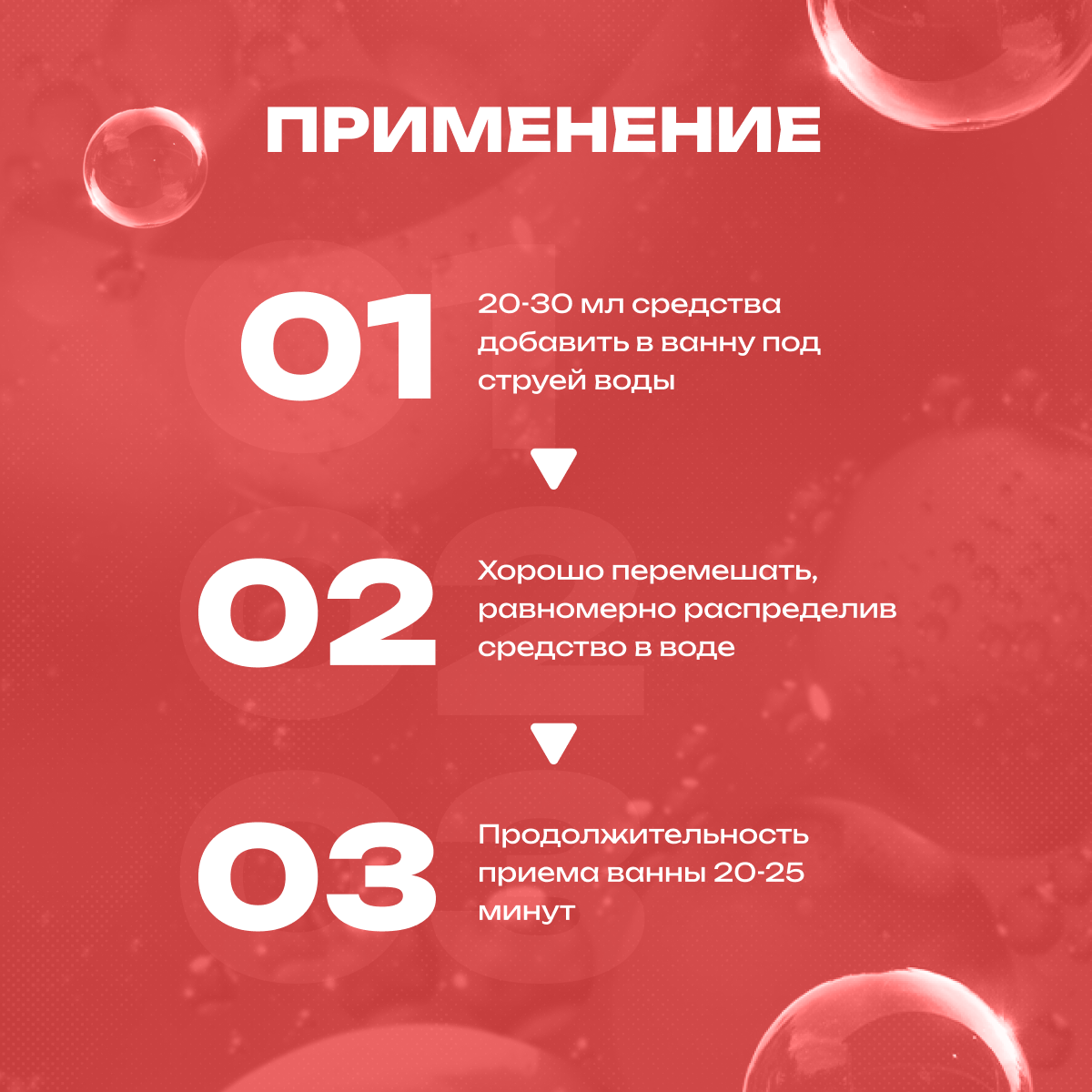 | Способ применения | Для принятия ванны с пеной , необходимо небольшое количество пены (1-2 колпачка) растворить под струей воды. |