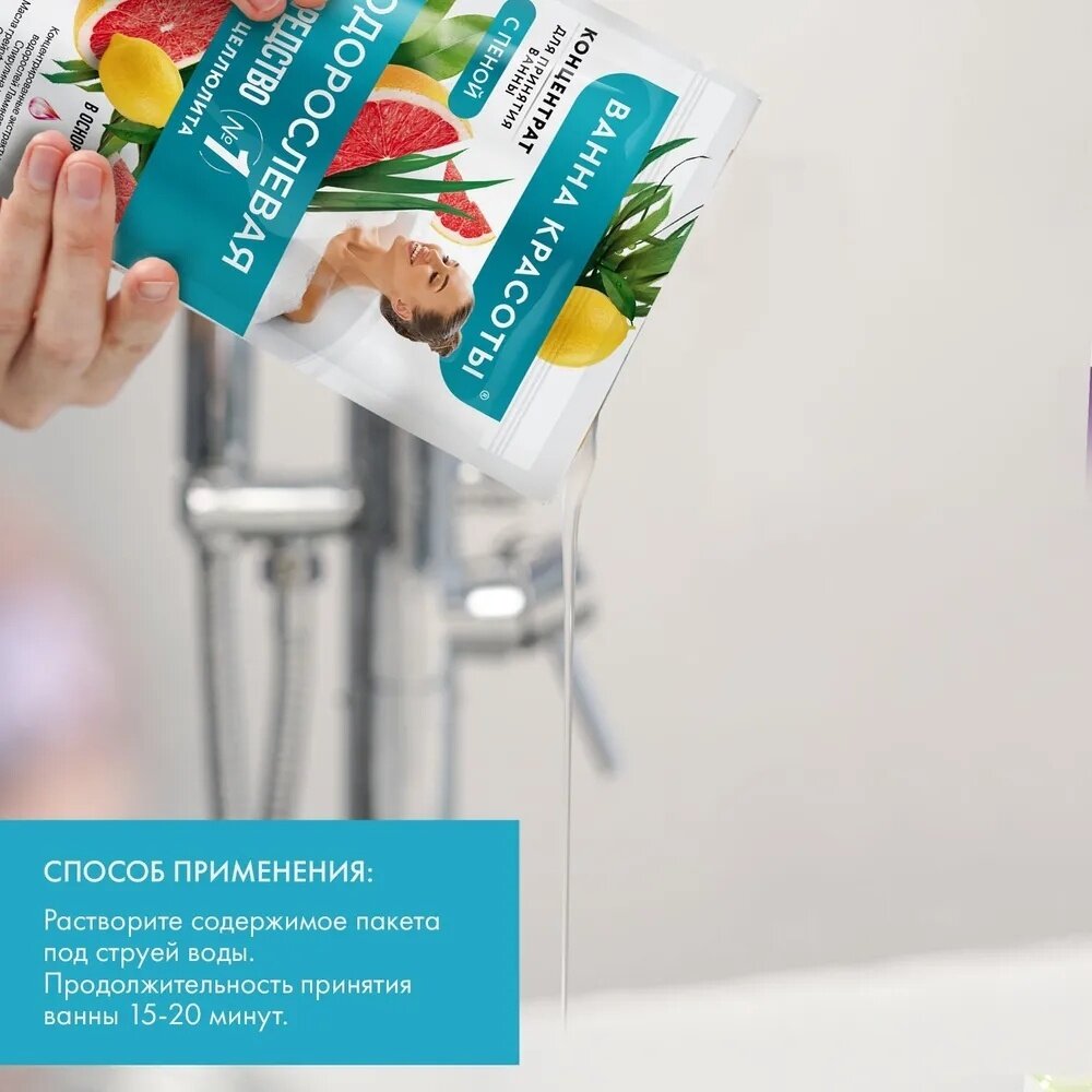 | Способ применения | Растворите содержимое пакета под струей воды (37-38° С). Продолжительность принятия ванны 15-20 минут. |