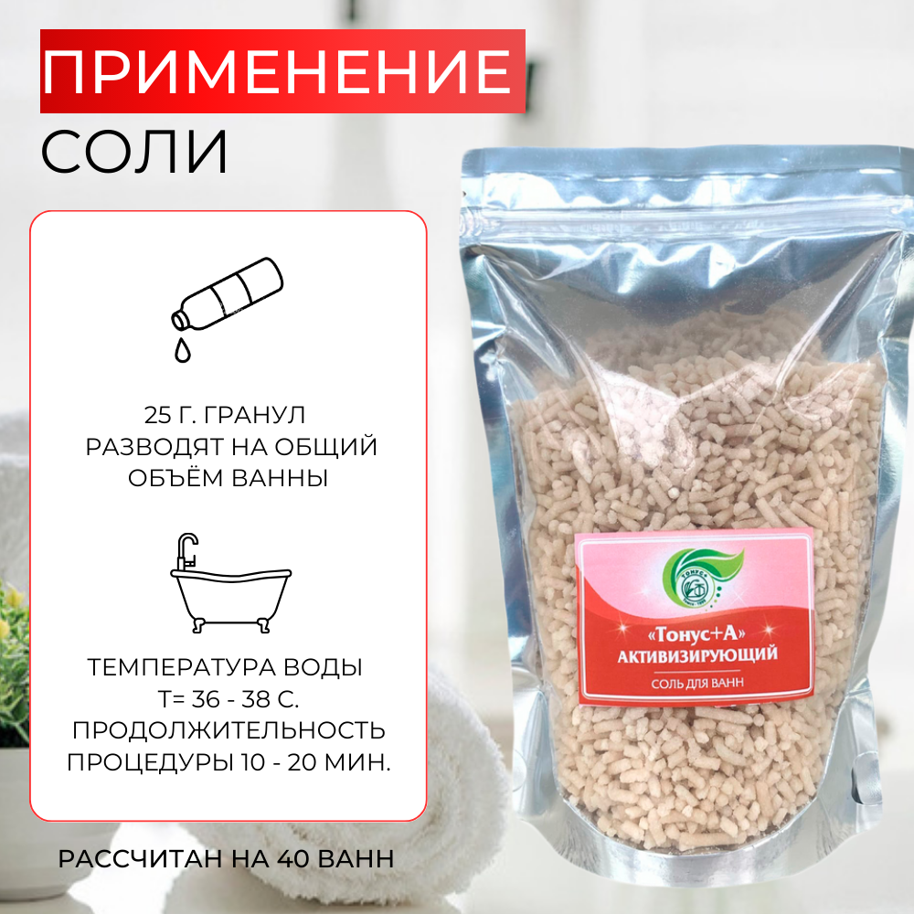 Тонус+ Морская гранулированная соль для принятия ванны и купания с активизирующим эффектом, 25 гр. гранул на ванну